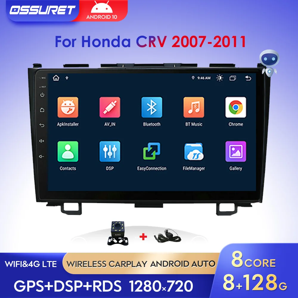 Автомагнитола на Android 10, мультимедийный плеер с GPS для Honda CRV CR-V 2007-2011, 9 дюймов, стерео, Wi-Fi, 4G, LTE, 2 din, Авторадио, навигация, SWC BT