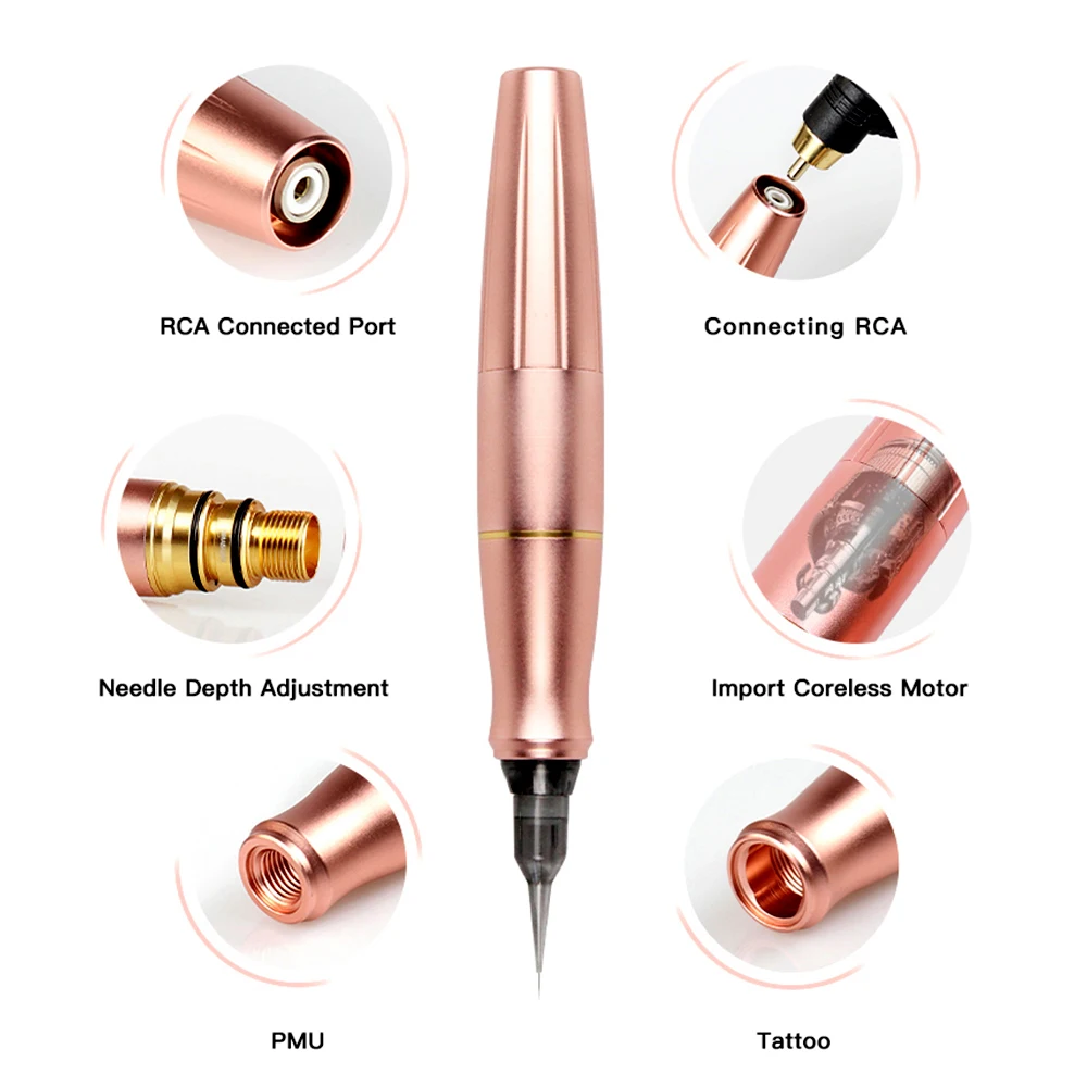 Материал: авиационный алюминиевый сплавВыступ иглы: 0-4,5 ммДвигатель: 9 В/12000 об/минРекомендуемое напряжение: 6-9 вРазъем RCA6,35 кабель: подходит для тату питанияКабель 3,5: подходит для постоянного макияжаЦвет: черный