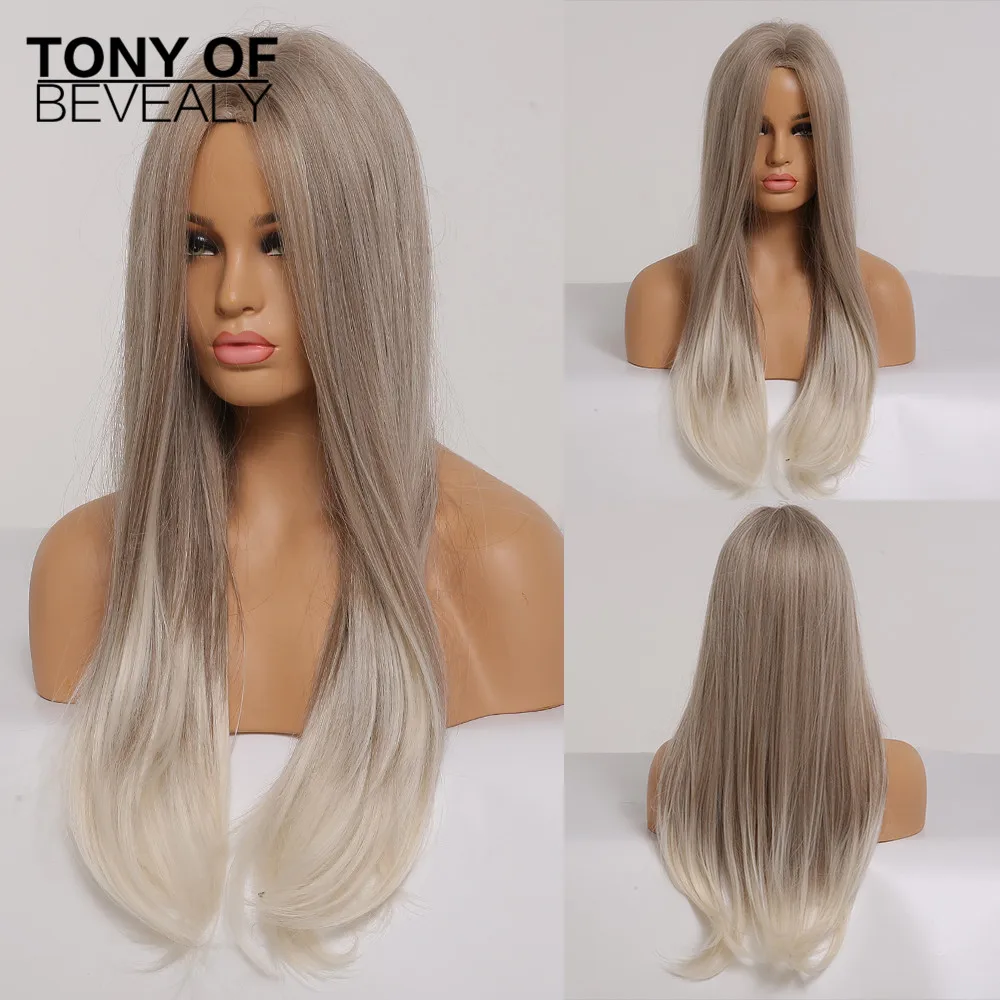 GEMMA Омбре коричневый блонд длинные прямые синтетические парики с ...