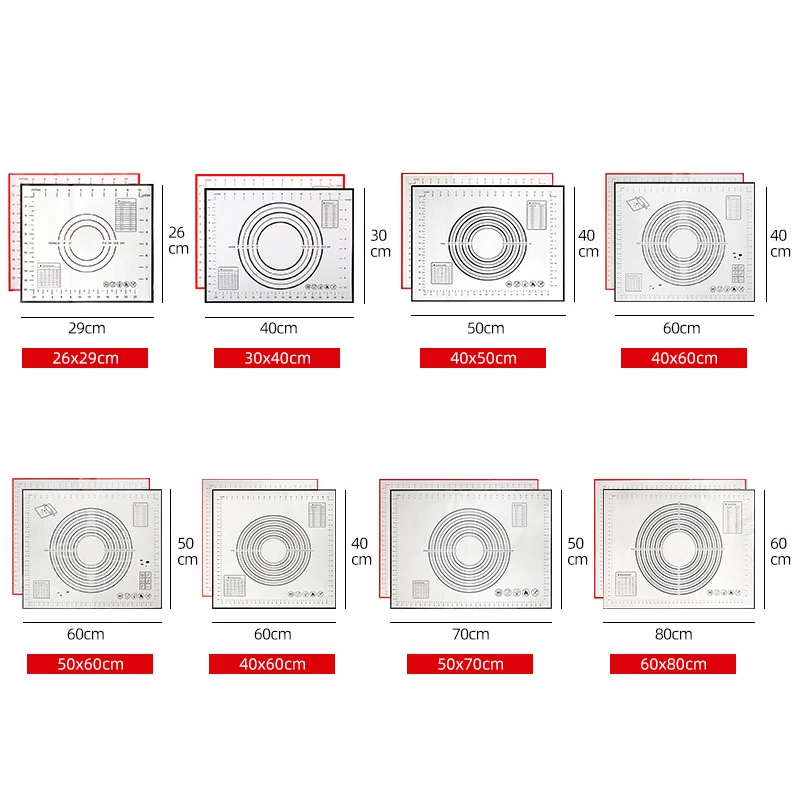 Материал: пищевой силиконРазмер:26*29 см, 30*40 см, 40x50 см,40x60 см, 50x60cmЦвет: красный, черныйКомплектация: 1 коврик для теста