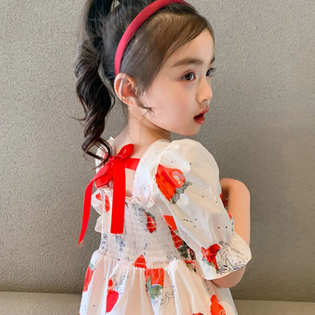 От 1 до 6 лет Детское летнее платье для девочек ясельного возраста детская одежда для девочек в виде клубники; С рюшами; Платье вечерние платья принцессы на Рождество, Vestidos, одежда для детей