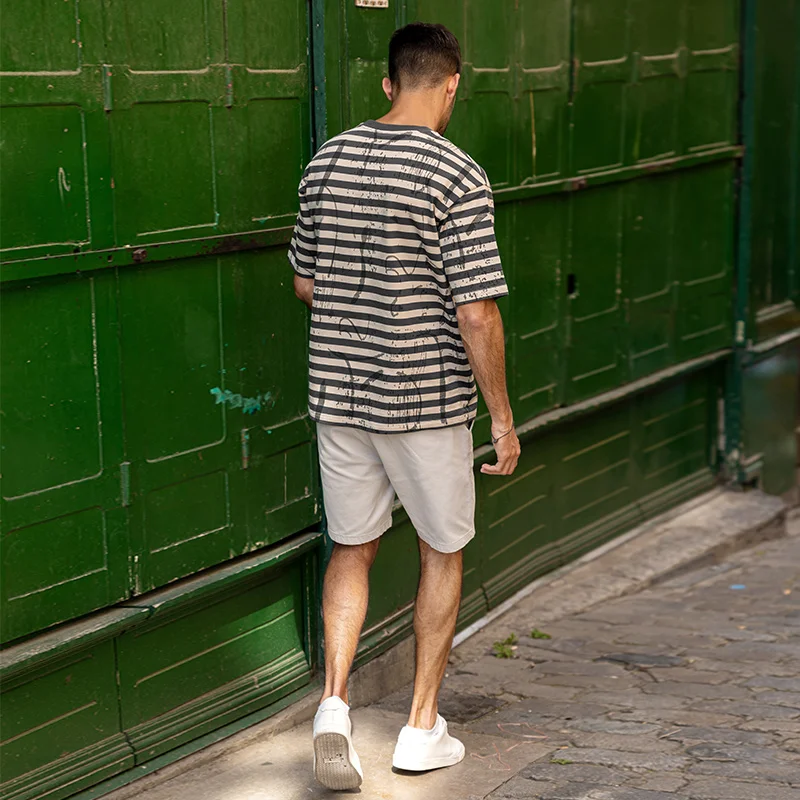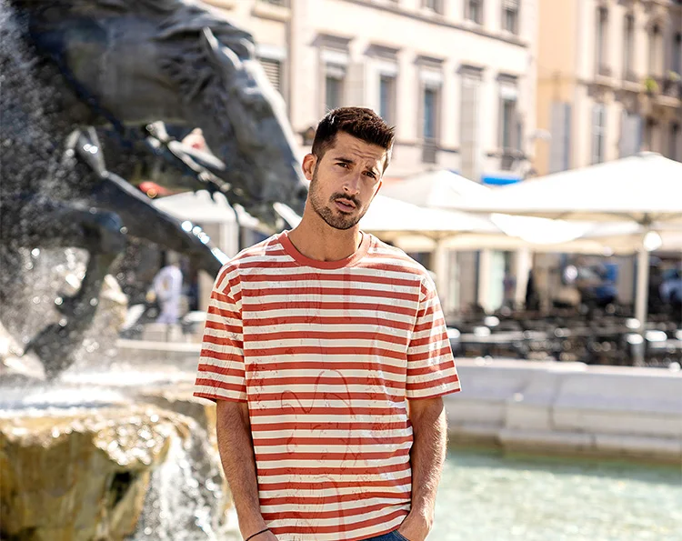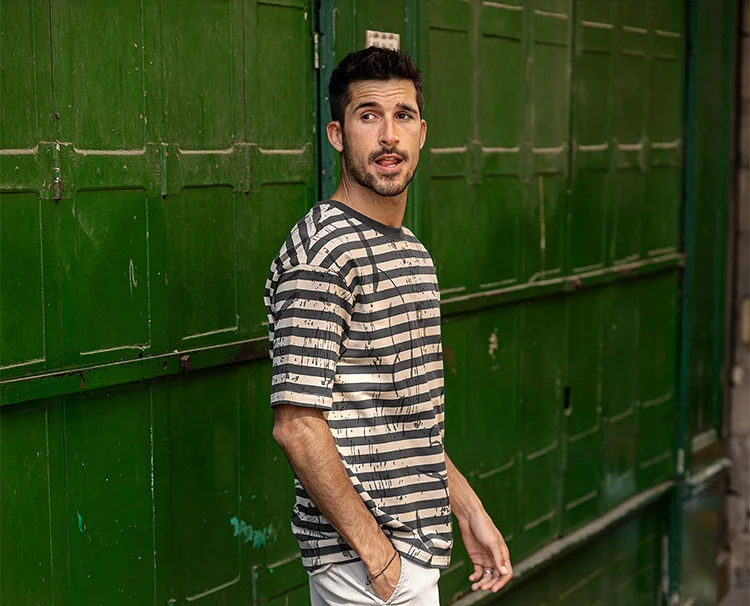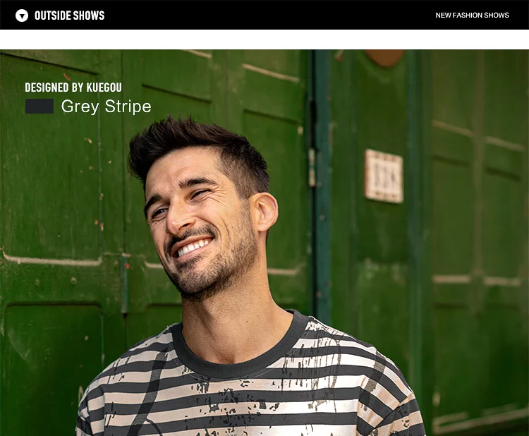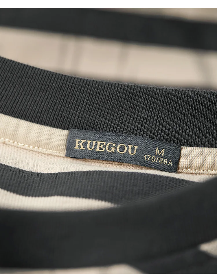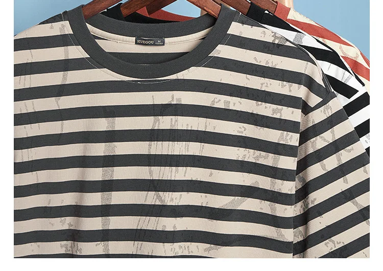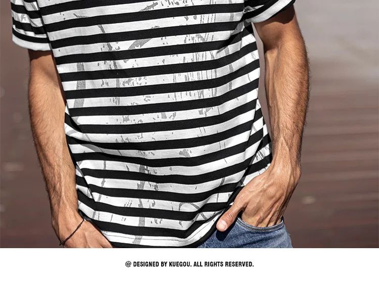 Мужская футболка KUEGOU, свободная футболка с коротким рукавом, в полоску контрастных цветов, лето стрейч-футболка