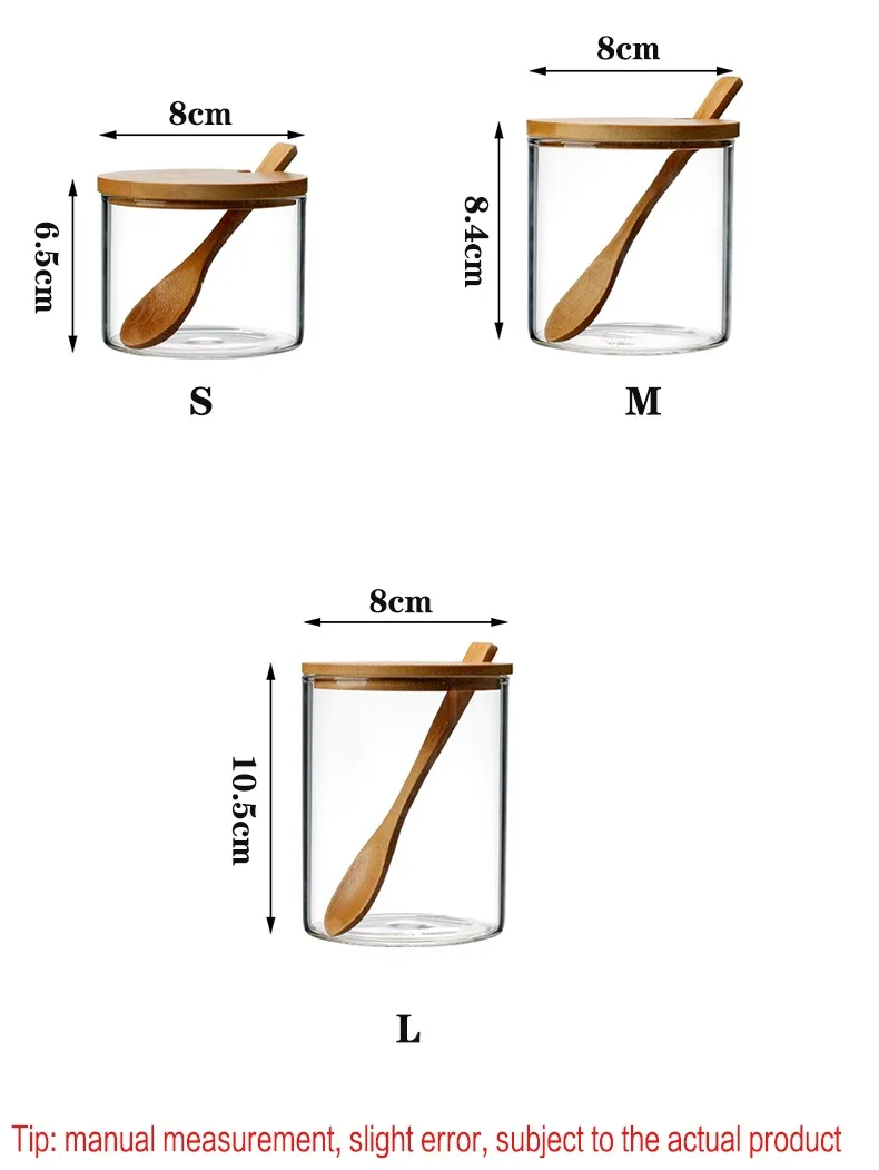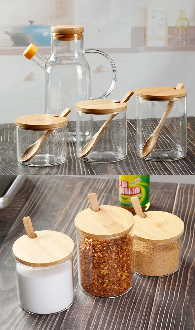 Европейский стиль кухонное Стекло Набор банок для приправ сахар для соли, для приправ банка с деревянной крышкой Ложка приправа Инструмент Контейнер для приправы