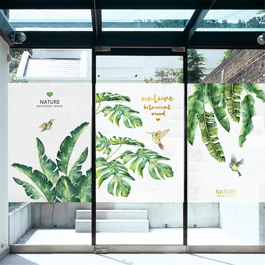 Оконная Пленка Конфиденциальности зеленых растений Стекло Стикеры блокирует ультрафиолет тепла Управление Жалюзи На Окна чёрных машин для Обложка домашний декор