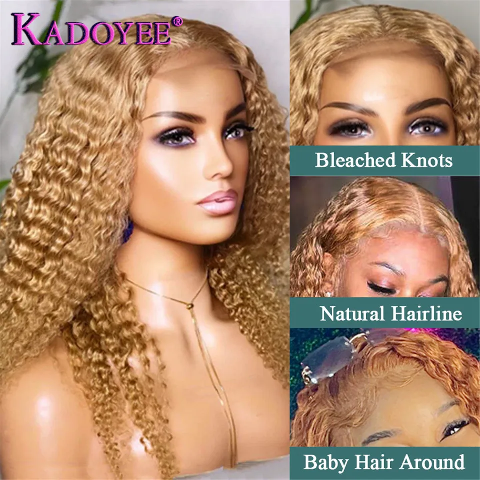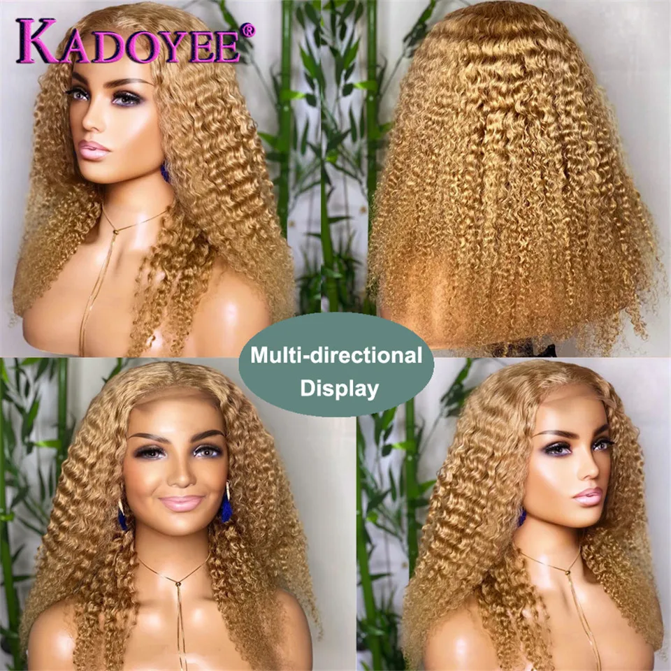 Медовый блонд, кружевные передние парики, кудрявые человеческие волосы, парик для волос, волосы Remy, предварительно выщипанные, кудрявые, кудрявые, на шнуровке, фронтальные парики для женщин
