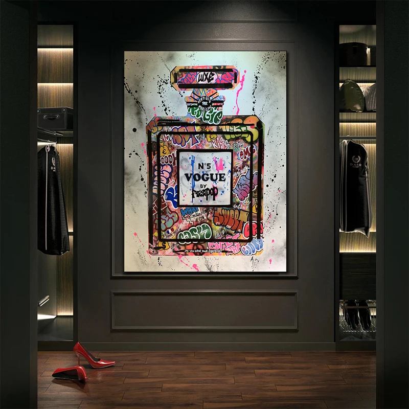 Роскошные буквы граффити флакон духов Холст Картина абстрактная фотография Модный Современный домашний декор для комнаты