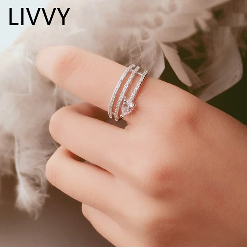 Новинка, кольцо LIVVY серебряного цвета с натуральным Цирконом в форме капли воды, женское открытое трехслойное кольцо, свадебное уникальное модное Ювелирное Украшение