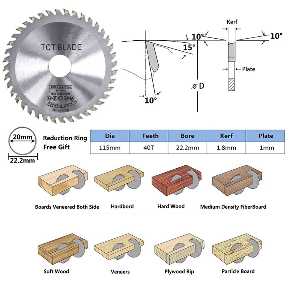 115 мм твердосплавный диск циркулярной пилы 40т деревообрабатывающий, вращающийся колесо режущего диска для дерево, гранит Мрамор Круглопильный Станок угловая шлифовальная машина