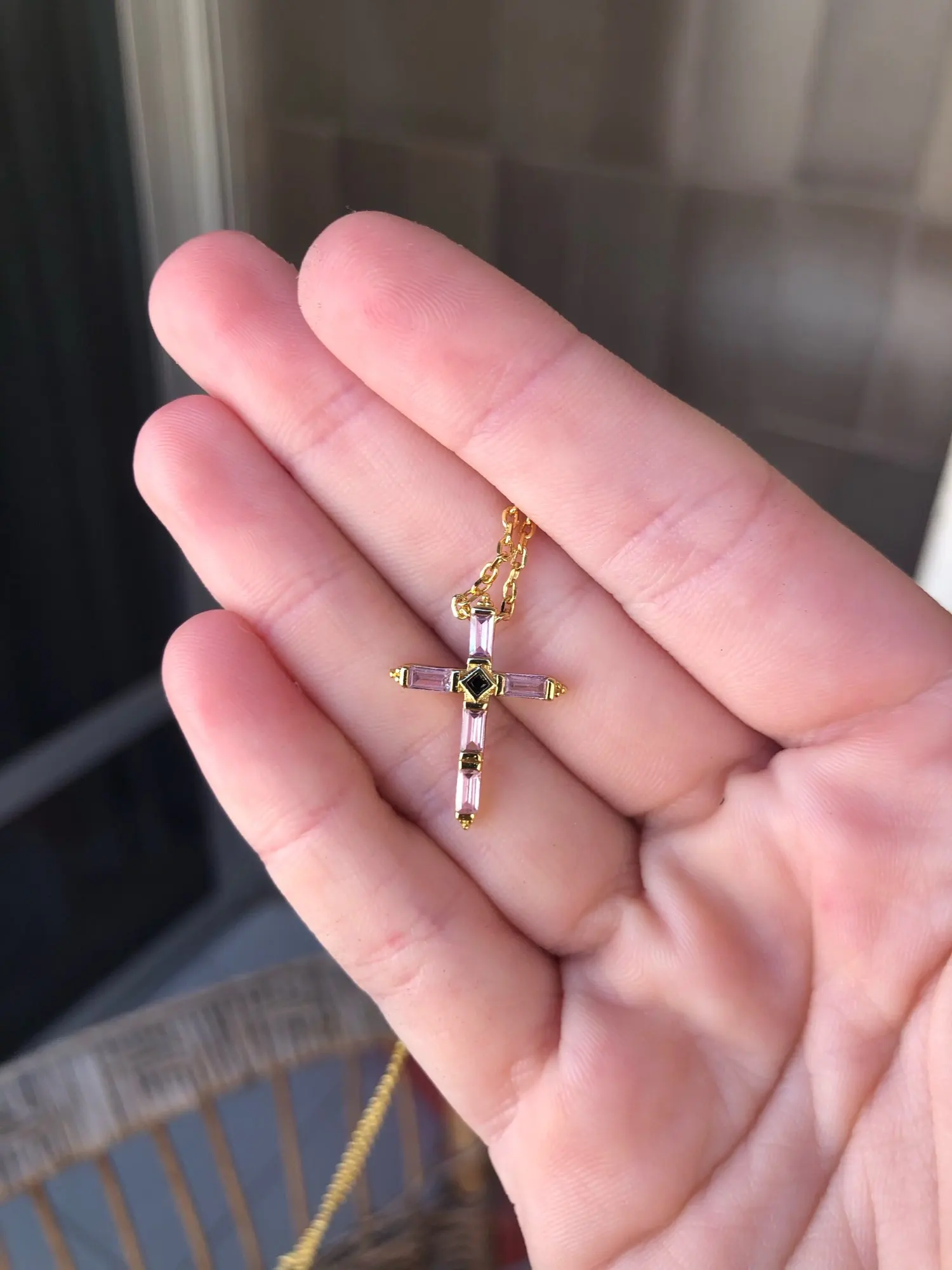 Ожерелье красивое, но это второе, что я спрашиваю, потому что крест очень хрупкий и нежный. Вы должны быть очень осторожны, чтобы не носить его все время или спать, потому что он может легко сломаться.