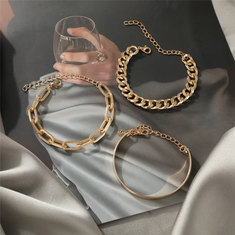 3 шт.компл. женский многослойный браслет-цепочка в стиле панк золотого цвета