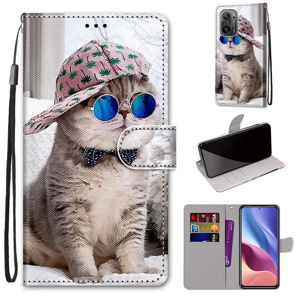 Кожаный чехол с откидной крышкой для Xiaomi Redmi K40 Pro Plus Note 10 Pro Max 10s чехла-книжки с отделениями для карт и милый чехол для Poco F3 M3 Pro 5G