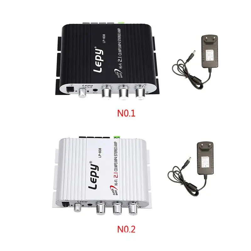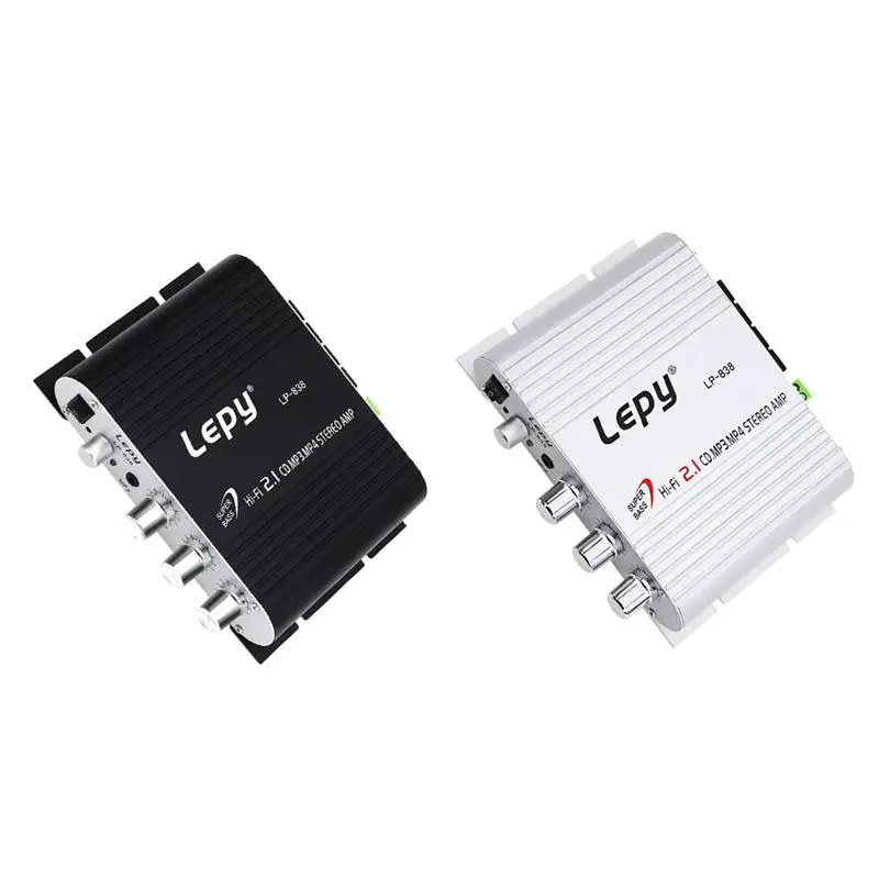 Lepy LP-838 с адаптером питания и аудио-и видеокабель 2,1 3 канала Мини Стерео усилители Hi-Fi компакт-дисков MP3 ПК усилитель мощности автомобиля сабвуфер усилитель