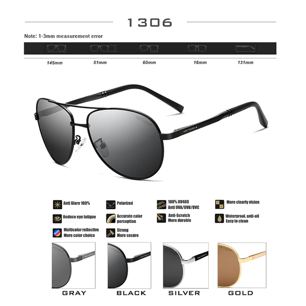Мужские солнцезащитные очки VEITHDIA, классические винтажные поляризационные солнцезащитные очки с линзами UV400, брендовые дизайнерские очки для вождения, V1306
