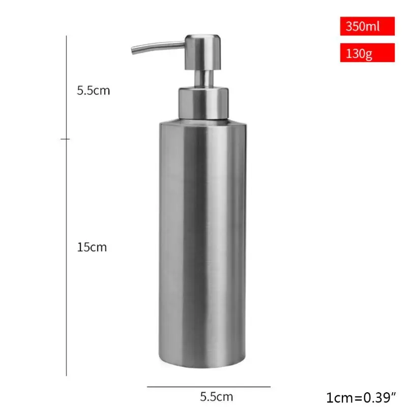 13ма ручной диспенсер для мыла из нержавеющей стали ручной металлический насос дезинфицирующее средство для бутылки лосьонаOOTDTYРучной Диспенсер для мыла из нержавеющей стали ручной металлический насос бутылка для лосьона дезинфицирующее средство Диспенсер для мыла для мытья рук шампуньОписание:100% новый и высокое качествоОсобенности:Этот дозатор мыла может быть заполнен ручным мылом, мылом для посуды, жидким моющим средством или лосьоном для рук.Многофункциональное использование делает его полезным в ванной, спальне и кухне.Изготовлен из нержавеющей стали для долговечности и надежности, специальные материалы и технологии подкладки предотвращают ржавчину.Все, что вам нужно сделать, это вытереть его тряпкой и теплой мыльной водой, а матовая никелевая отделка блестит и снова станет совершенно новым.Спецификация:Тип: ручной дозатор мылаМатериал: нержавеющая стальПрименение: для шампуня кондиционер гель для душа мылоХарактеристики: ручной дозатор мыла, бутылка для ручного насоса, дозатор мыла для мытья рук, кондиционер для шампуня, контейнер для геля для душа, домашний предмет для ванной комнатыРазмеры:250ml: app.5.5x10 + 5,5 см/2,17x3,94 + 2.17in350ml: app.5.5x15 + 5,5 см/2,17x5,91 + 2.17in550ml: app.7x15 + 5,5 см/2,76x5,91 + 2.17inЦвет: серебристыйКоличество: 1 шт.Примечание:1. Допускается погрешность в 0-1 см из-за ручного измерения. Пожалуйста, убедитесь, что вы не возражаете, прежде чем сделать ставку.2. В связи с разной конфигурацией разных мониторов изображение не отображает фактический цвет товара. Спасибо!Посылка включает в себя:1 шт. ручной дозатор мыла