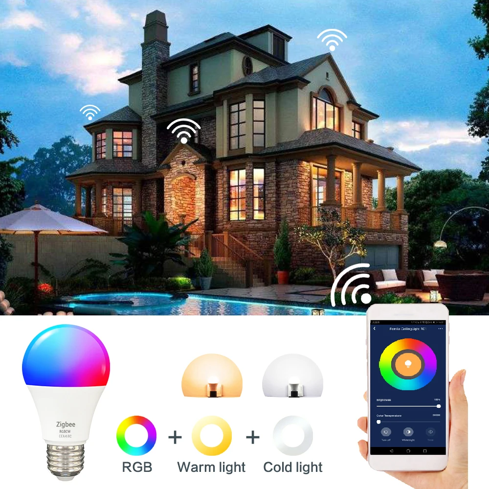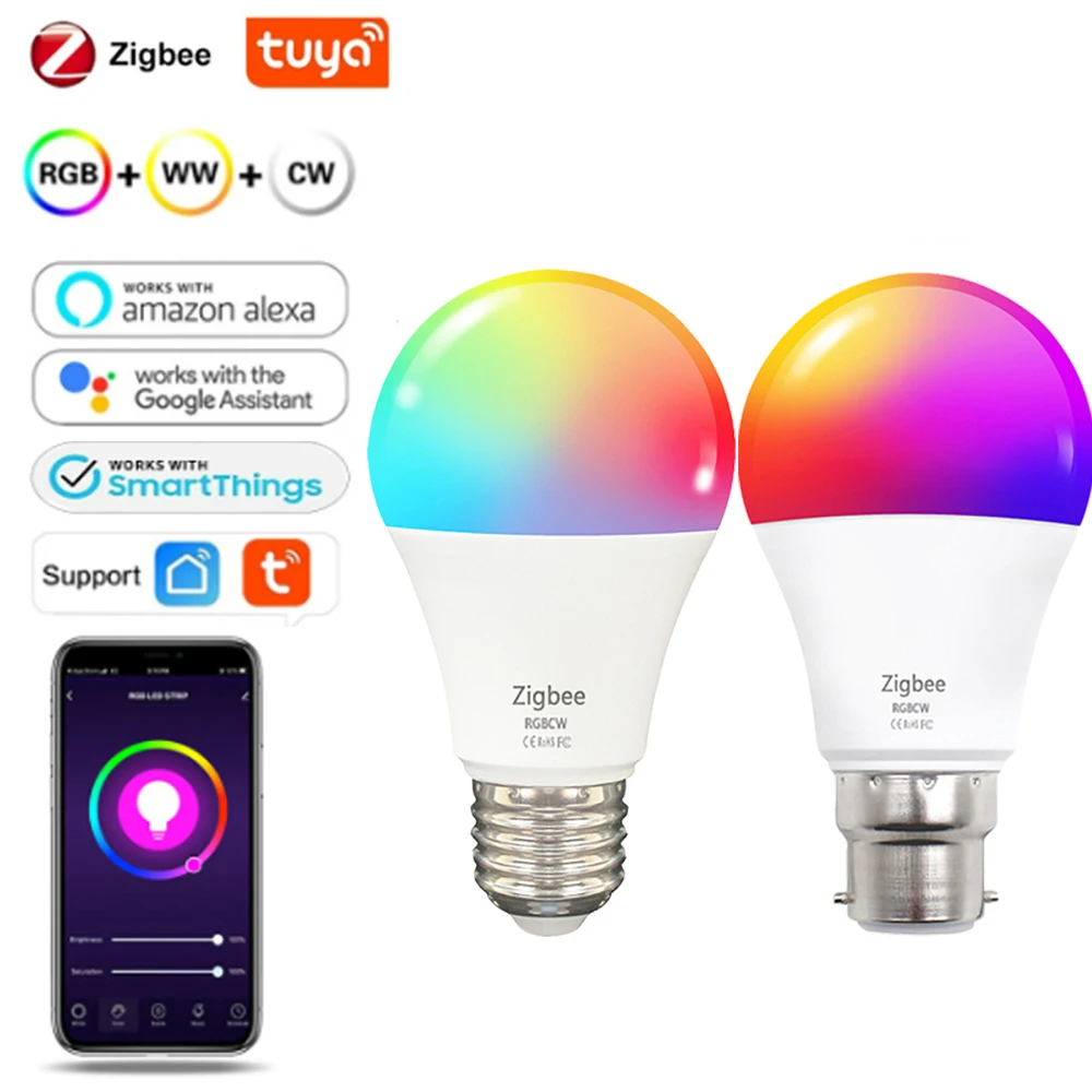 Умная лампочка Zigbee, лампочка Tuya, светодиодсветильник лампа с изменением цвета, E27, B22, 110 В, 220 В, приложение совместимый с Alexa, Google Home