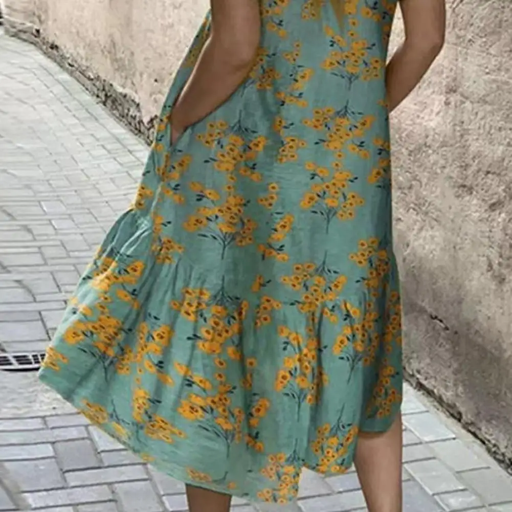 Пляжное платье с коротким рукавом и цветочным принтом, миди-платье с оборками на Подоле и круглым вырезом, пляжная одежда, летняя одежда для женщин