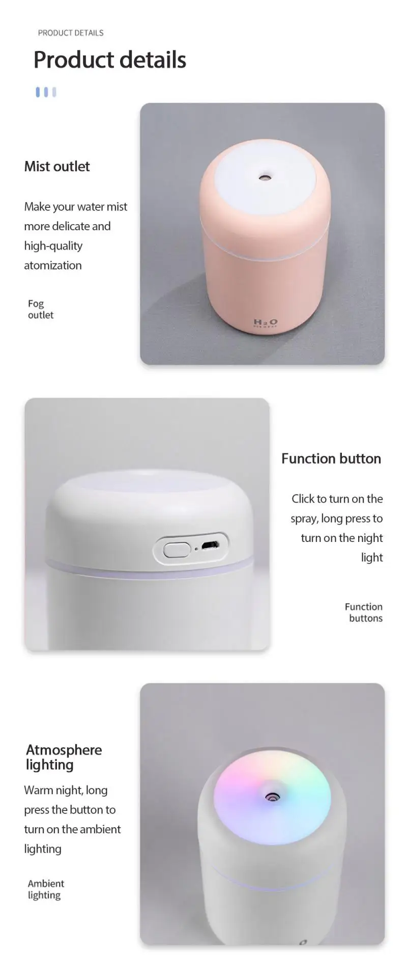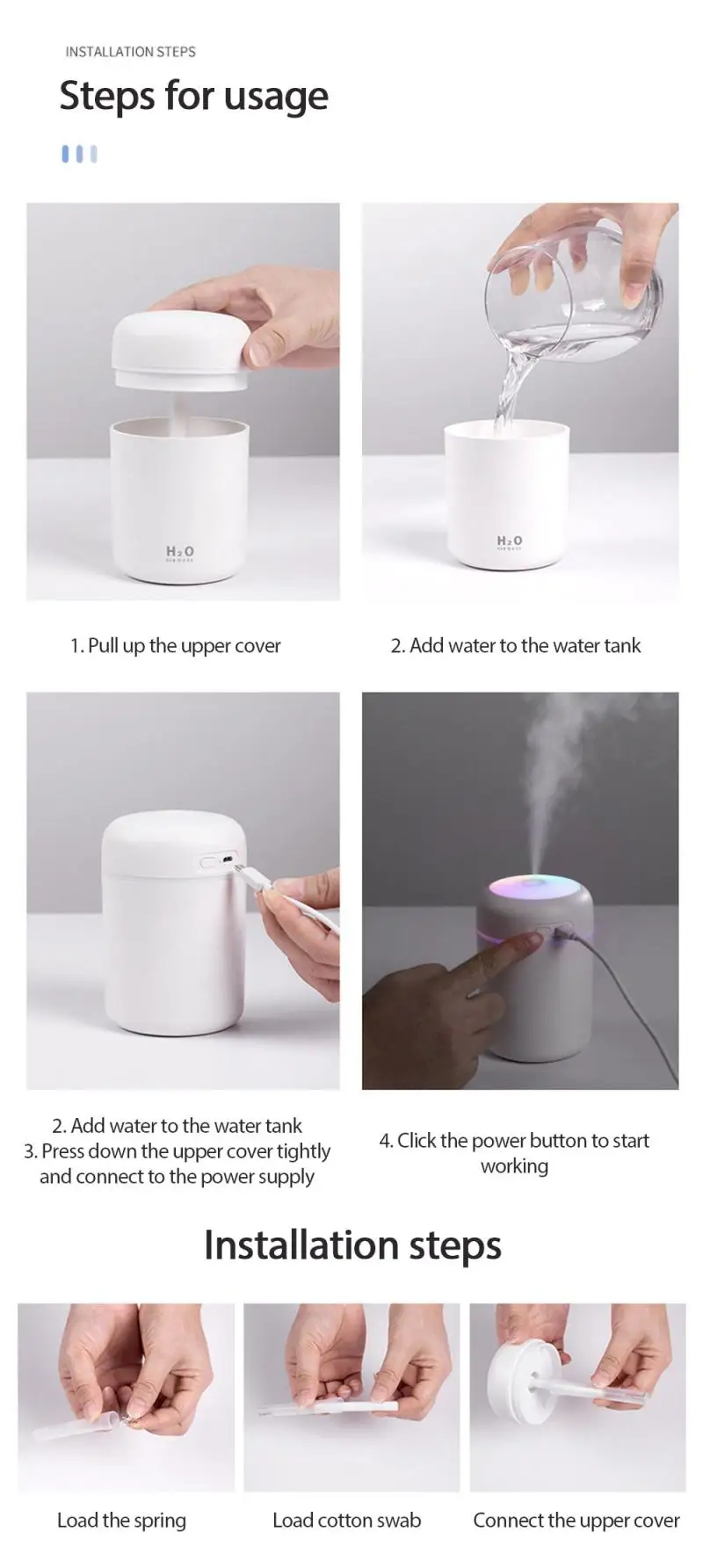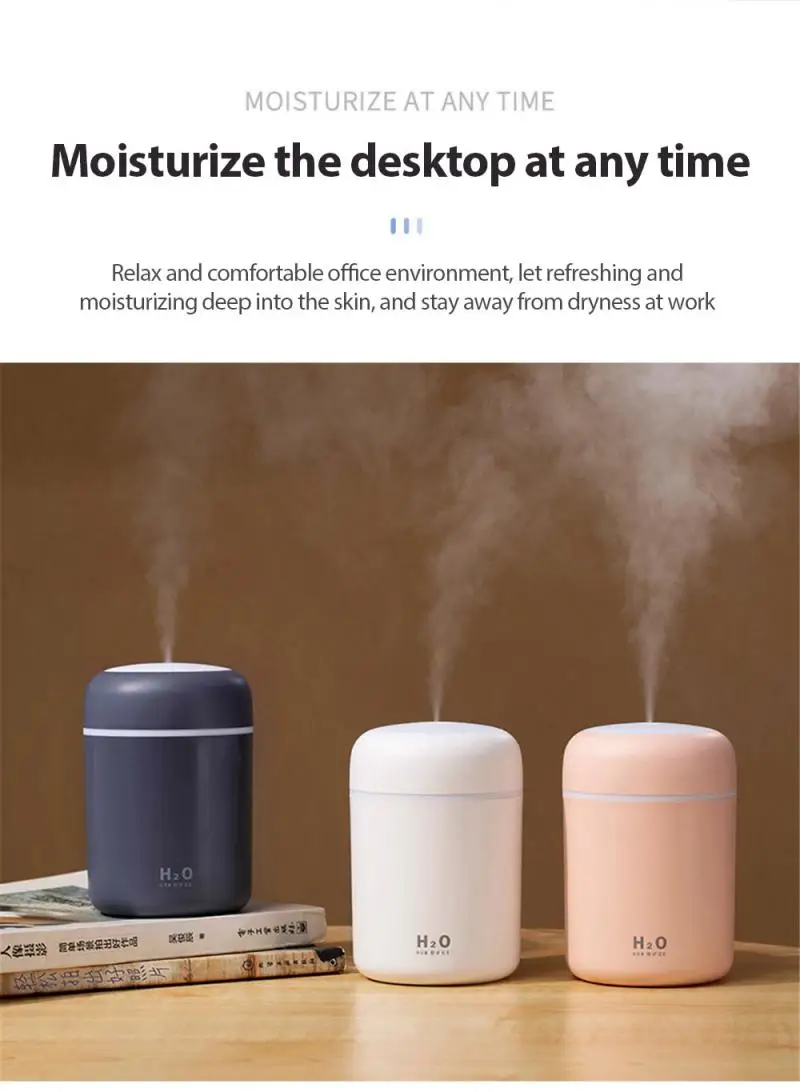 Мини увлажнитель арома-масла диффузор. 300 мл резервуар для воды. С красочным ночным светильник.