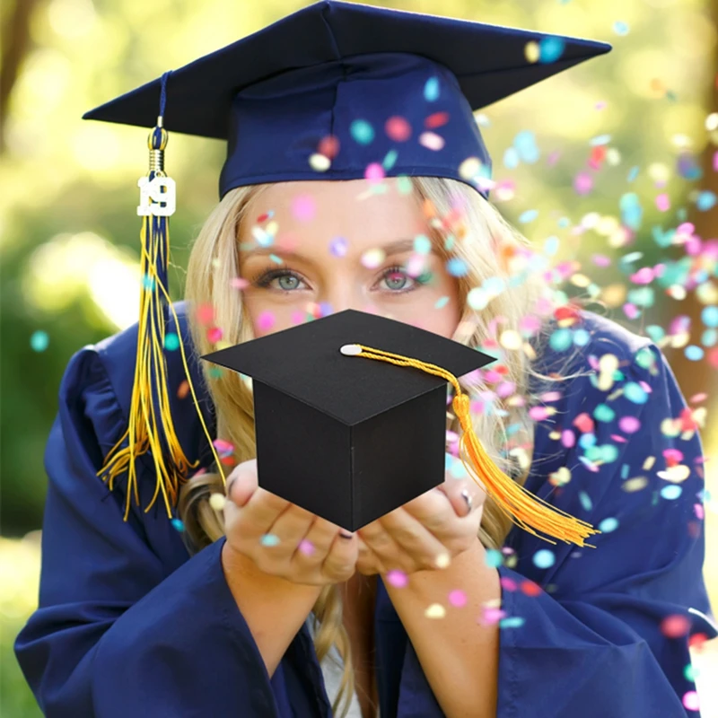 Коробка для конфет в виде шляпы, выпускного, 10 шт., украшение для выпускного, 2021, украшения для поздравления, выпусквечерние А, подарочная упаковка