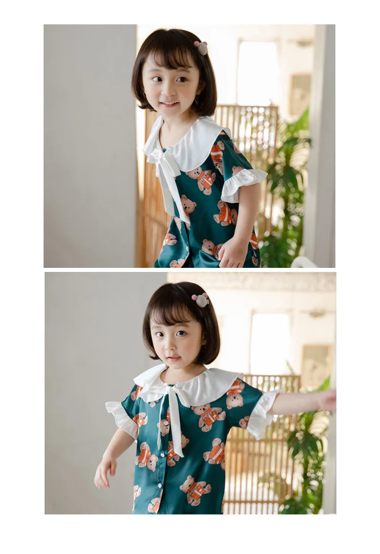 Летние Пижамные комплекты с отложным воротником для девочек, 2 цвет...