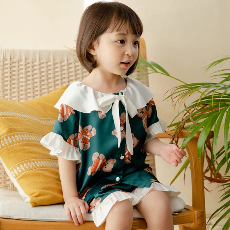 Детские пижамные комплекты с бантом в стиле "Лолита" для девочек, х...