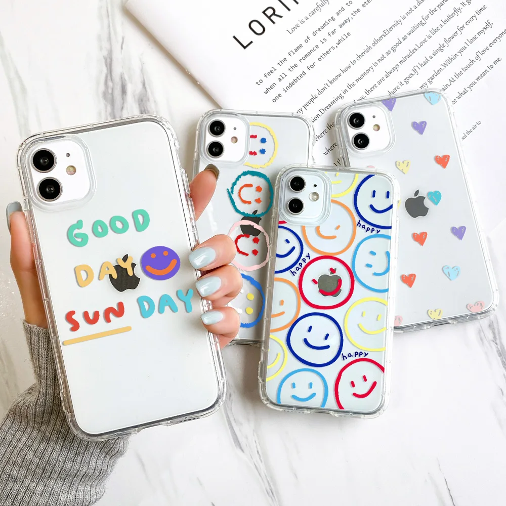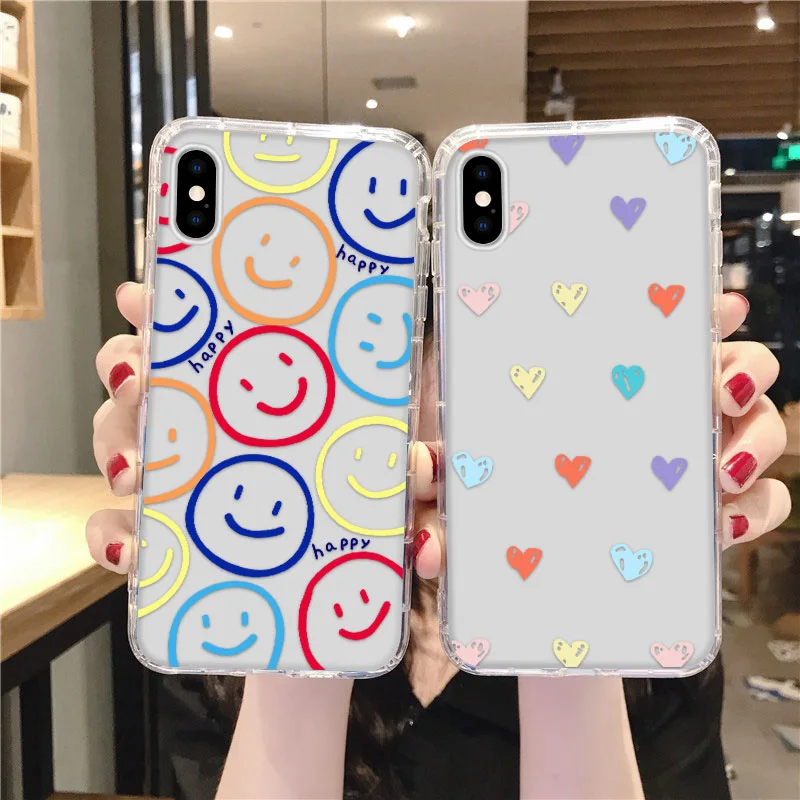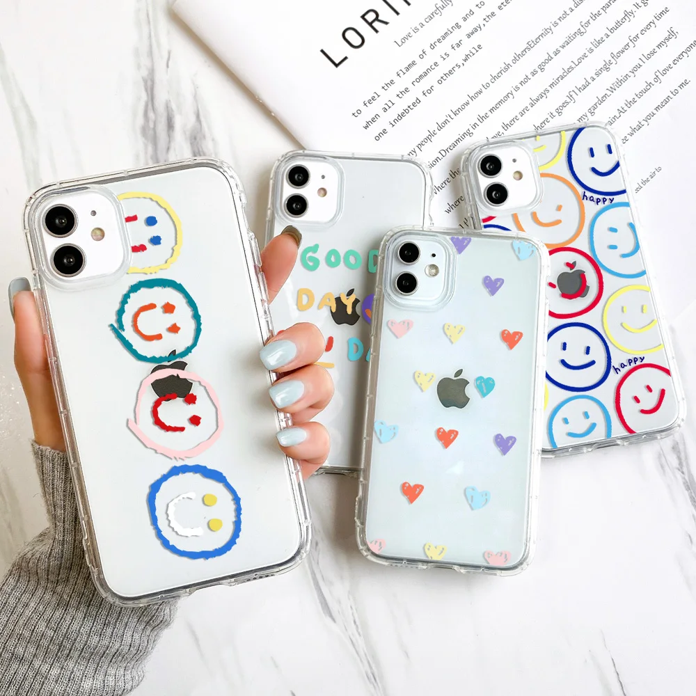 Чехол с подушкой безопасности для Iphone 11 12 Pro max 7 8 XR SE 2020 X Xs 6 6s Plus, силиконовые чехлы с милой улыбкой, чехлы для Iphone11 12Pro Mini