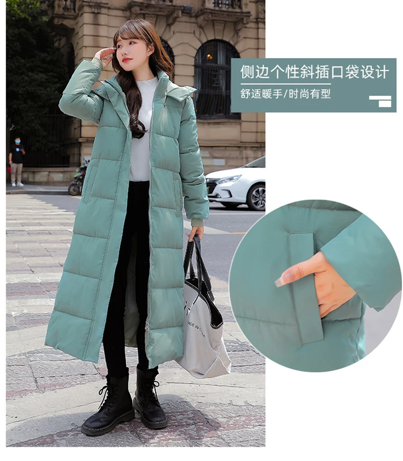 Новинка 2021, длинный пуховик с капюшоном, зимнее пальто, женская п...