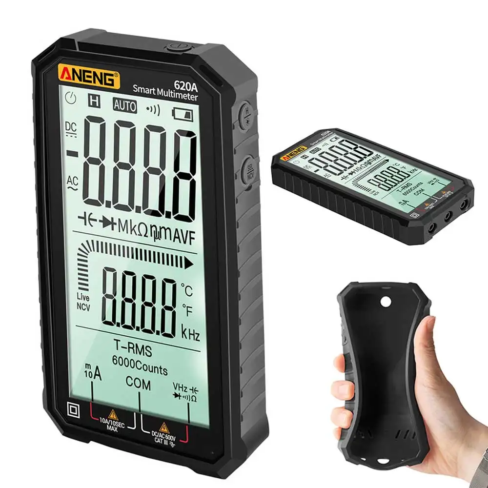 Описание:1. Мультиметр: измеряет ток переменного/постоянного тока, напряжение переменного/постоянного тока, Бесконтактное Обнаружение напряжения переменного тока (NCV), обнаружение живой/нулевой линии, сопротивление, диод, емкость, температуру и частоту.2. Громкий звуковой сигнал: Датчик NCV и детектор живой/нулевой линии посылают звуковой и визуальный сигнал после обнаружения напряжения переменного тока.3. Легко читать: 4,77-дюймовый ЖК-дисплей с задней светильник позволяет просматривать показания четко даже в тусклый светильник.4. Простота в использовании: предлагает вам автоматический и ручной режим для очень простого использования.5. Безопасный и надежный: обеспечивает защиту от перегрузки и 1000 В, 10 А тестовых проводов, безопасный и надежный в использовании.6. Долговечность: ударопрочный и нескользящий Силиконовый чехол эффективно защищает устройство от повреждений.7. Ультра портативный: мультиметр пальмового размера достаточно мал, чтобы держать его в руке или положить в карман, легко носить с собой.8. Автоматическое выключение: Автоматическое выключение в течение 15 минут, если нет работы, помогает сохранить батарею.Дополнительные функции: Функция удержания данных, фонарик, градус Цельсия/Фаренгейта и многое другое.Характеристики:Бренд: ANENGТип товара: мультиметрМатериал: АБС-пластикЦвет: черный/красный (на выбор)Дисплей: ЖК-дисплейМакс. Значение дисплея: 6000 подсчетовАвтоматическое выключение: 15 минутМаксимальная рабочая высота: 2000 метровТип батареи: щелочная батарея AAA (2 шт.) (не входит в комплект)Размер: 14,27x7,74x2,38 см/5.61x3.04x0.93inПримечание:-Возможны небольшие погрешности в размере при ручном измерении.-Из-за различных эффектов освещения и настроек монитора фактический цвет товара может не точно отражать цвет на фотографиях.Упаковочный лист