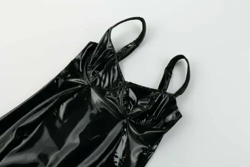 Трендовое женское платье с открытой спиной, сексуальная латексная искусственная кожа, облегающее платье без рукавов, вечернее мини-платье на бретелях