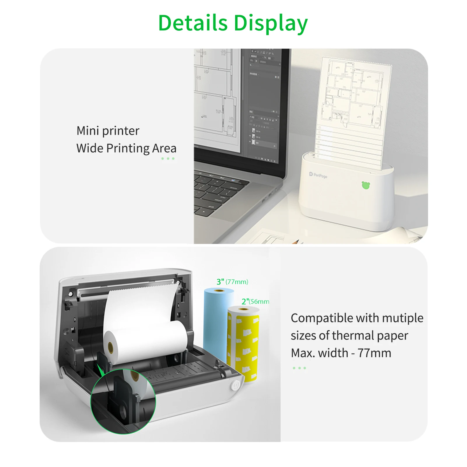 Особенности: ♥【Peripage многофункциональное устройство термопринтер может печатать фотографии, этикетки, наклейки, сообщения, списки, записи, qr-коды, печатные заметки и изображения, штрих-коды, ручной рисунок, распознавание текста OCR, баннеры, неправильные вопросы, файлы, печать веб-страниц, AR фото и так далее. Приложение предлагает множество смайликов и тем, чтобы сделать ваш контент стильным, веселым и практичным. ♥ 【Бесплатно к принт】 Поддержка беспроводной BT подключен к смартфону и USB кабель, подключенный к ПК. Совместимость с системой Android, iOS и Windows. Пожалуйста, следуйте инструкциям пользователя, чтобы загрузить относительное приложение «PeriPage» на свой смартфон, вы можете печатать в любое время и в любом месте, когда они успешно подключаются. ♥ 【Совместимость с бумагой разных размеров 】 поддержка 56 мм/77 мм ширина Тепловой Бумаги, диаметр рулона 30 мм. Использование rs может использовать различную ширину печатной бумаги в соответствии с их потребностями и больше не беспокоиться о ограниченном размере печати. ♥ 【Отличный термопринтер принимает высококачественную оригинальную печатающую головку с разрешением 304DPI, термопринтер имеет четкое качество печати. Работает при низком уровне шума, никогда не будет беспокоить кого-либо, Идеальный принтер. ♥Rechargeable перезаряжаемый Printer】 со встроенной литиевой батареей емкостью 800 мА · ч, принтер с наклейками может избежать потери высокой стоимости нескольких одноразовых батарей. ♥ 【Мини-принтеры для подарка 】 мини-принтер Peripage-лучший подарок для студентов, офисных работников, влюбленных, друзей, семьи и т. д. Лучшие моменты можно напечатать прямо с телефона в одно мгновение. Спецификация: Бренд: Peripage Модель: A9S Цвет: белый Материал: АБС-пластик Тип печати: термопечать Вход: 5V,2A Разрешение: 304 точек/дюйм Рулон бумаги: поддержка Макс. 56*30 мм/Макс. 77*30 мм Диаметр рулона: ≤ 30 мм Термальная бумага совместима: бумага для заметок/Наклейка/Этикетка/фотобумага Подключение: Подключение BT/USB Скорость печати: Макс. 10 мм/с Встроенный литиевый аккумулятор 2 шт.: каждый 800 мАч, 7,4 В Интерфейс зарядки: Micro USB Время зарядки: около 2 часов Поддерживаемая система: совместима с Android, iOS, Windows Язык приложения: китайский/английский/японский/Корейский/тайский/немецкий/французский/русский/испанский/португальский Товар Размеры: 11,8x7,1x4,4 см/4,6x2,8 x 1.7in Вес изделия: 211 г/7,4 унций Посылка Размеры: 12x9,3x4,8 см/4,7x3,7 x 1.9in Посылка Вес: 364g/12,8 oz Примечания: 1. Из-за ручного измерения отклонение 1-3 мм является нормальным. 2. Пожалуйста, внимательно прочитайте руководство пользователя, когда вы начинаете использовать продукт. 3. Для лучшего качества печати, пожалуйста, купите нашу официальную упаковочную бумагу. Посылка: 1 х термопринтер 1 кабель Micro USB 2 x бумажный держатель 1 x Руководство пользователя 1 х рулон бумаги (77 мм х 30 мм)