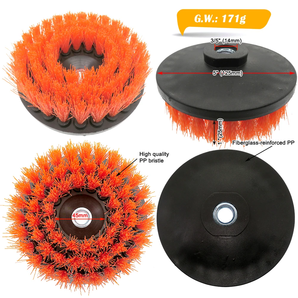 Щетка для дрели, щетинистая щетка для автомобиля, 5 дюймов, для очистки автомобиля, сиденья лодки, ковровой обивки и душа