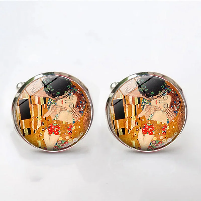 Запонки Gustav Klimt Kiss мужские высококачественные запонки с изображением дерева жизни масляная живопись Климт костюм рубашка Запонки мужские ювелирные изделия аксессуары