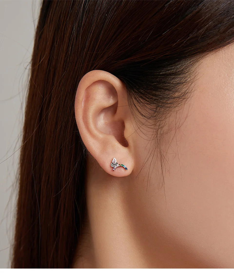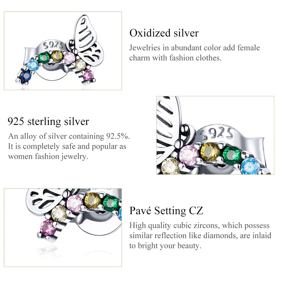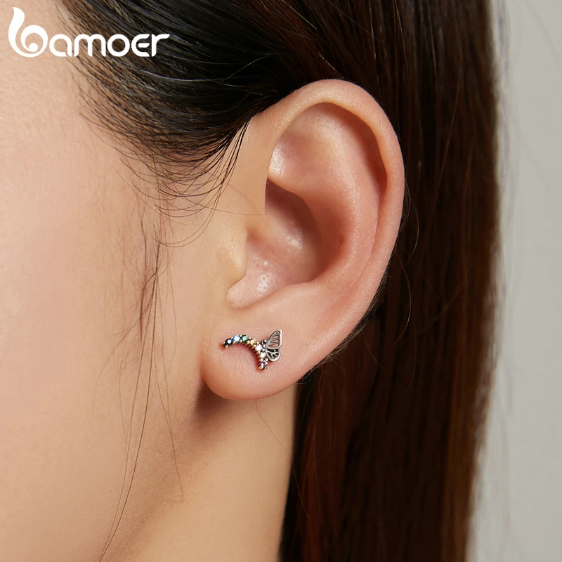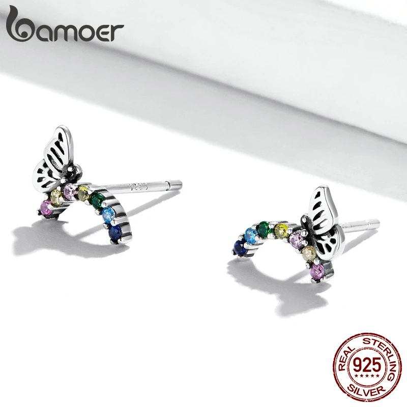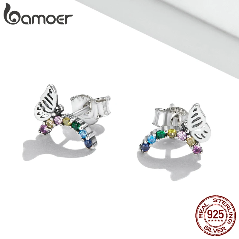 ❤[Материал] S925 + закрепка CZ + окисленное серебро❤【Размер 】 0,8*1 см❤【Вес 】 0,8 грамм❤[Количество] 1 пара серег-гвоздиков из серебра 925 пробы❤[Описание] Бабочка парит над маленькой радугой из циркония, с уникальной осадкой, красивая и очаровательная; Носится на ухо, модно и элегантно; Символизирует свободу и необузданность.❤【Для подарка 1 пара сережек-гвоздиков из серебра 925 пробы и 1 шт. шкатулки для украшений, которая станет идеальным лучшим подарком на день рождения, юбилейные подарки, подарки на исповедь...❤【BAMOER you】 если вы довольны ювелирными изделиями Bamoer после получения товара, мы искренне приглашаем вас оставить ценные комментарии, и мы будем продолжать делать все возможное, чтобы предоставить вам лучшее обслуживание.