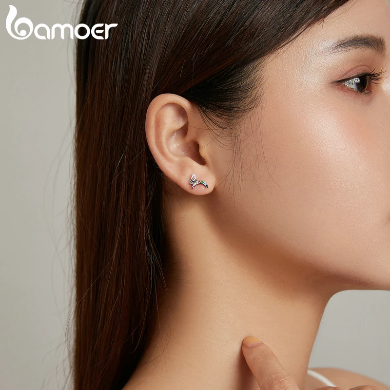 Женские серьги-гвоздики с хвостом русалки Bamoer, из подлинного сер...