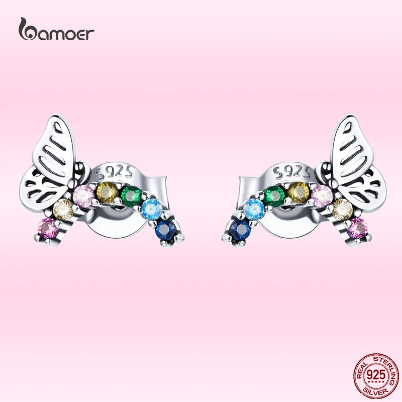 Модные серьги-гвоздики Bamoer с бабочками для женщин из стерлингово...