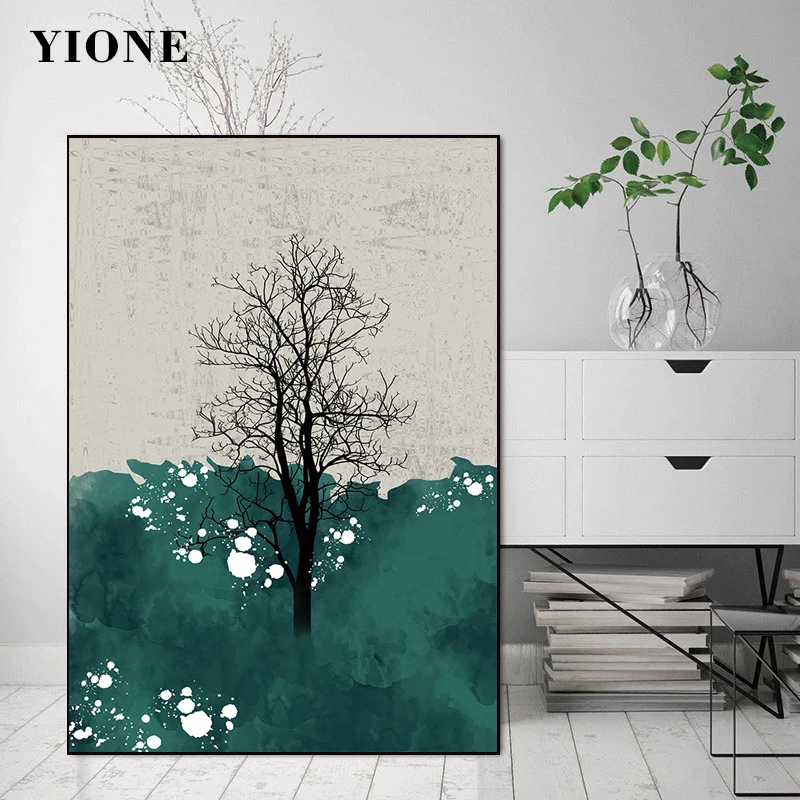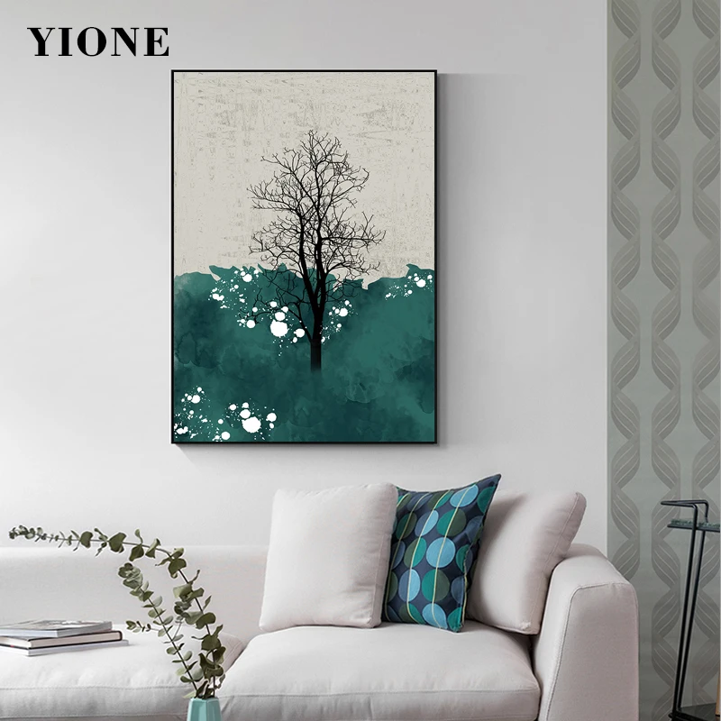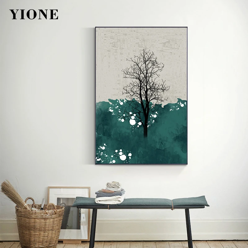 Настенная картина с зеленым скандинавским деревом, абстрактный современный постер с изображением растений на заказ, для гостиной, спальни, домашний декор