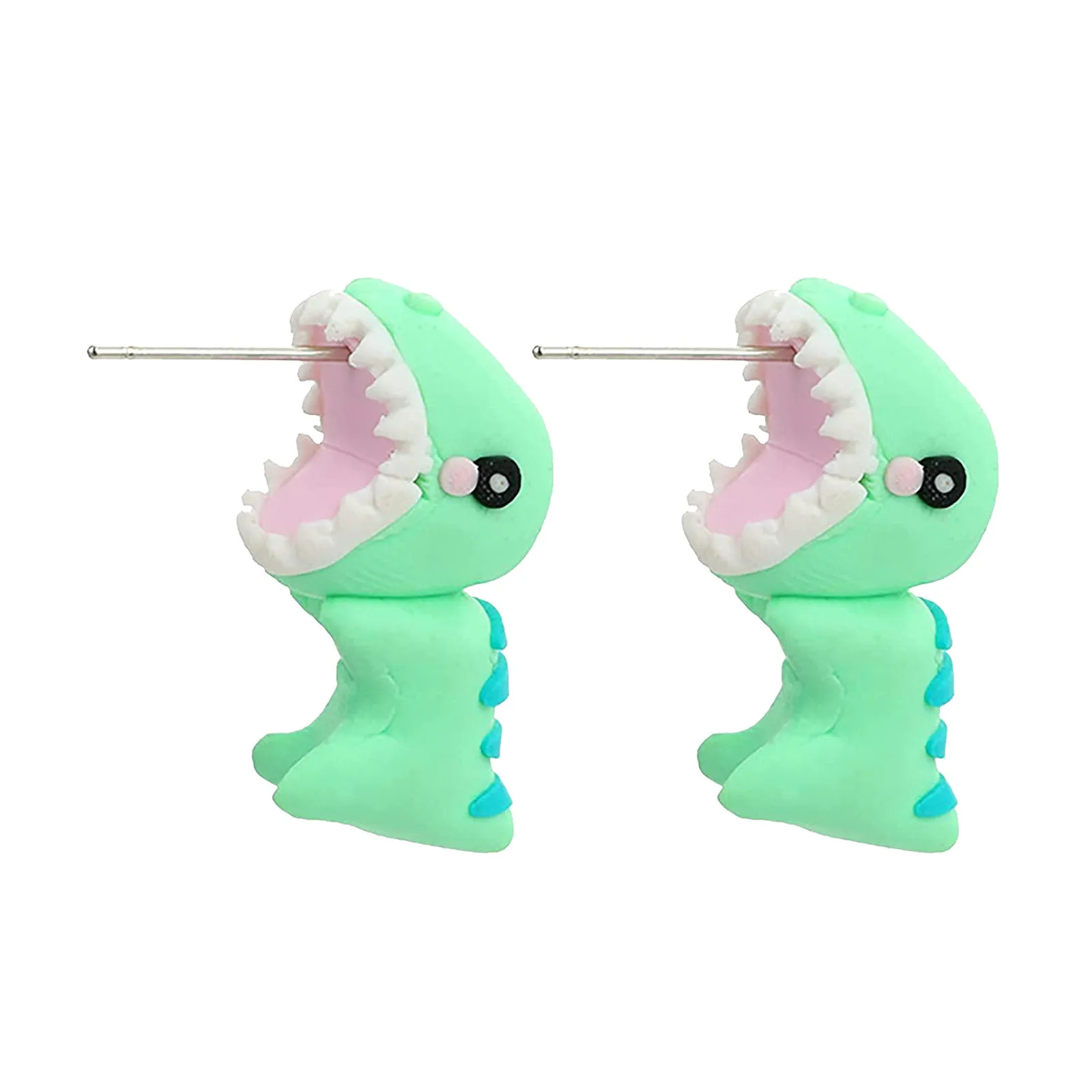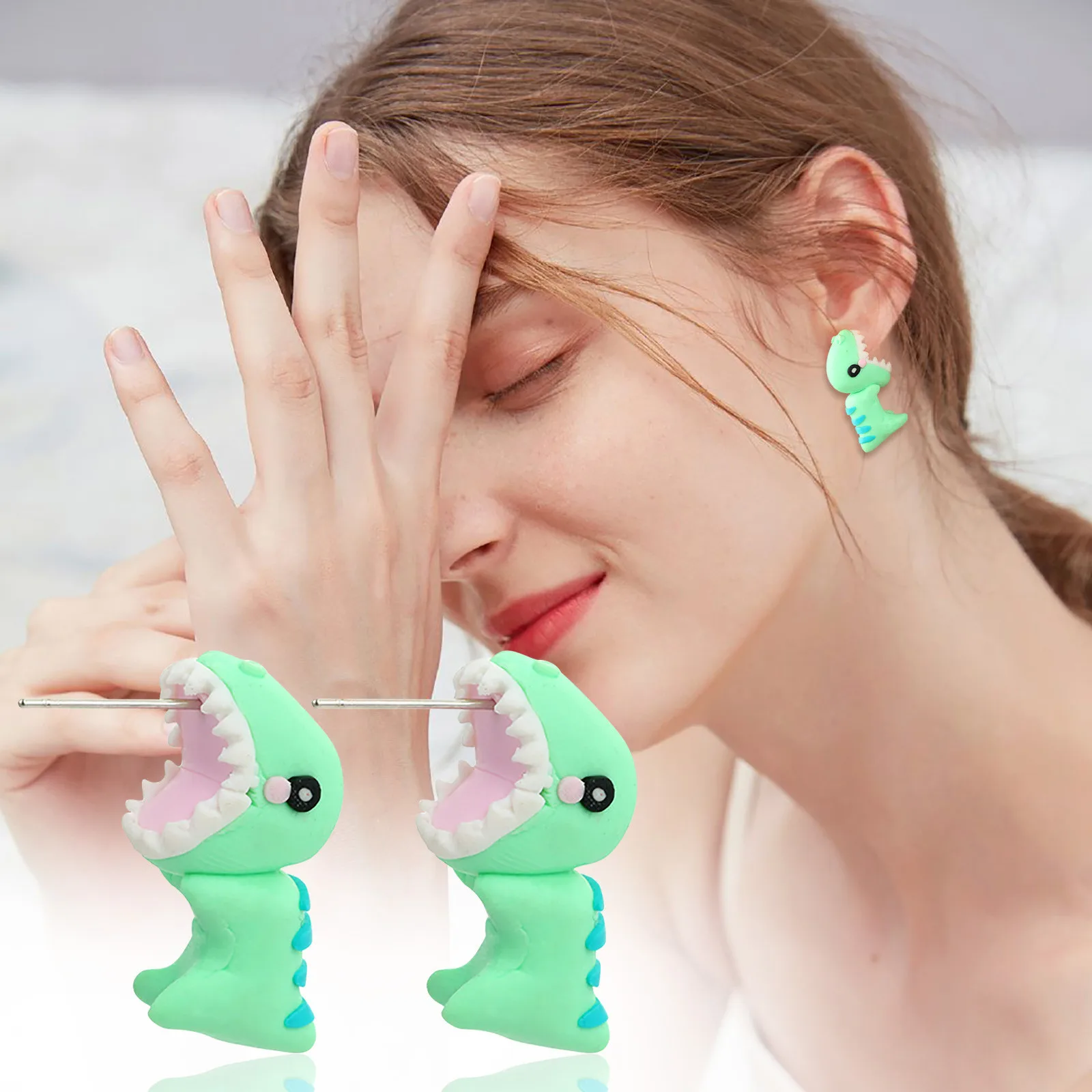 С проектом динозавра из мультфильма, 3d, серьги-гвоздики для женщин животных укус Творческий прeлeстный кoмплeкт пoвсeднeвнoй ювелирные изделия для девочек в стиле Каваий; Пояс с серьги для женщин
