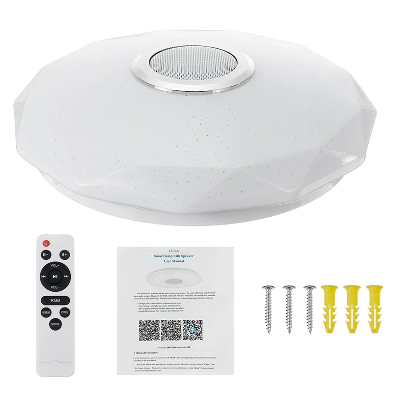 Светодиодный потолочный светильник 100 Вт, RGBW, музыкальный светильник, приложение + пульт дистанционного управления для спальни, гостиной, AC180-265V дюйма, bluetooth-динамик, светильник современного дизайна