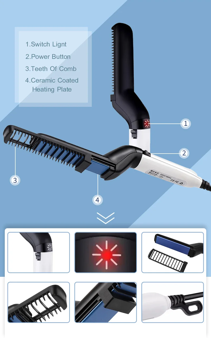Многофункциональный выпрямитель для бороды для мужчин, портативная электрическая щетка для бороды с быстрым нагревом и защитой от ожогов, расческа для бороды для мужчин