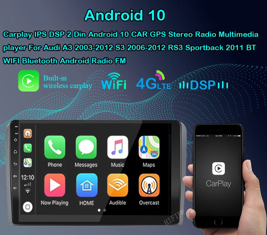 Carplay2 Din Android 10 Автомобильный GPS Стерео Радио мультимедийный плеер для Audi A3 2003-2012 S3 2006-2012 RS3 Sportback 2011 BT WIFI