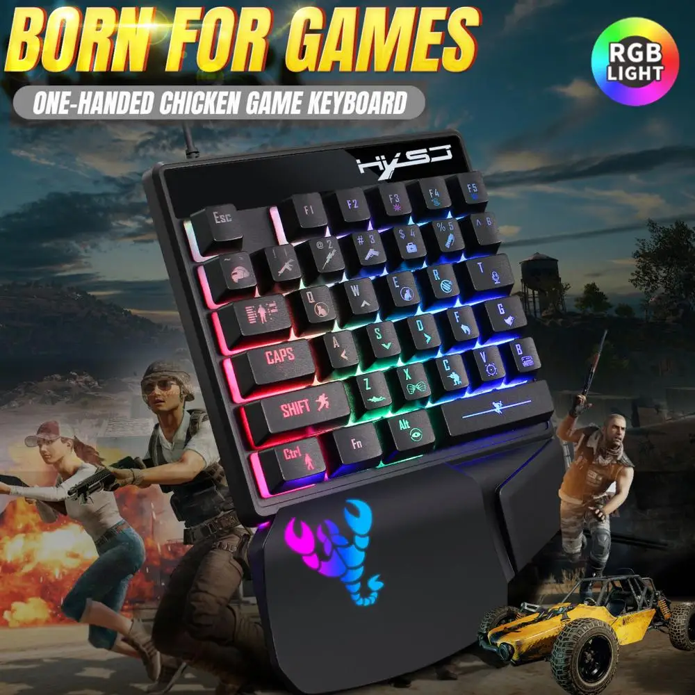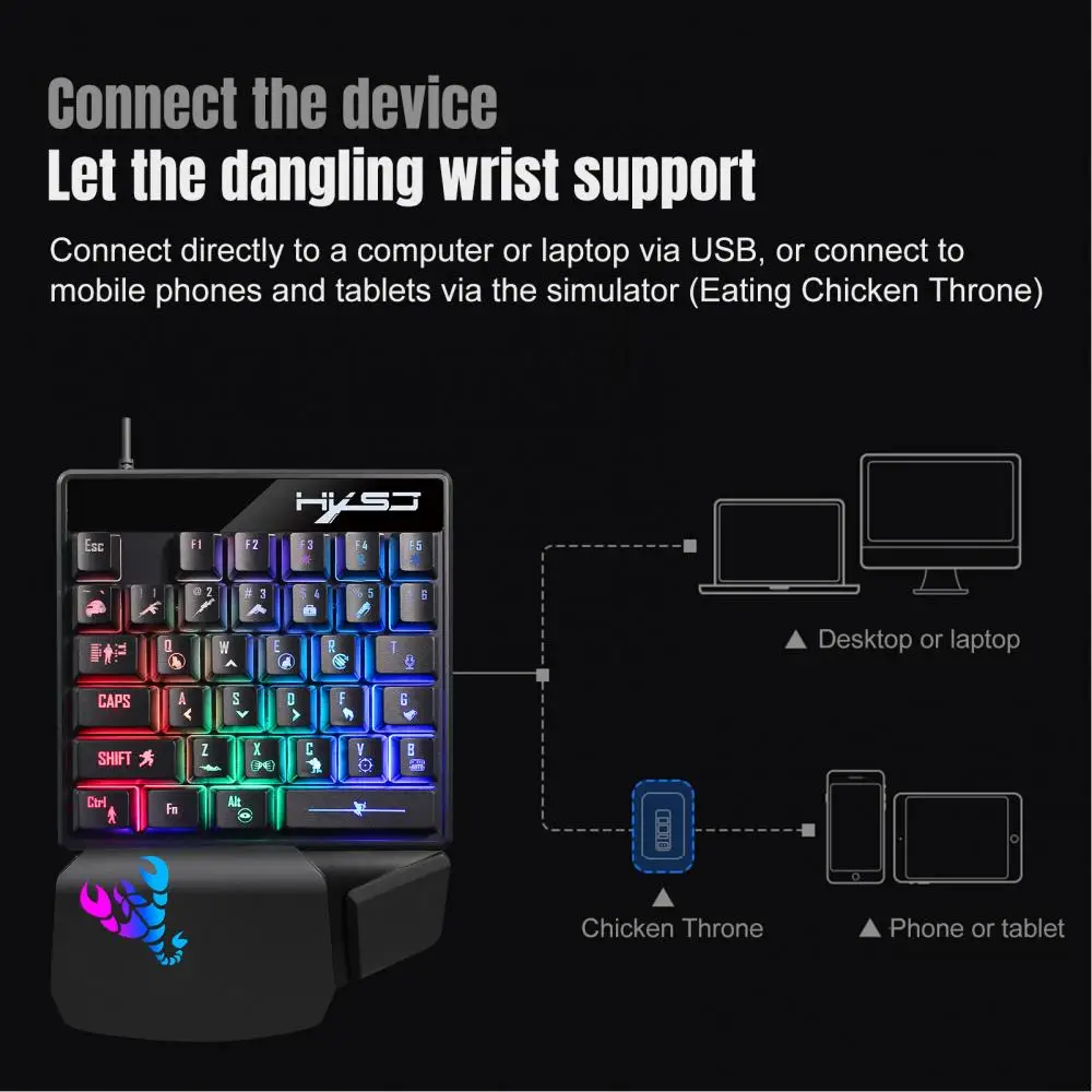 Комбинированная игровая клавиатура HXSJ V400 с RGB-подсветкой, программируемая игровая мышь + игровая клавиатура для одной руки, 35 клавиш