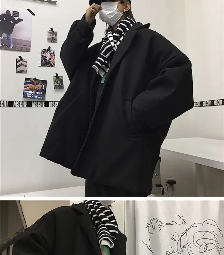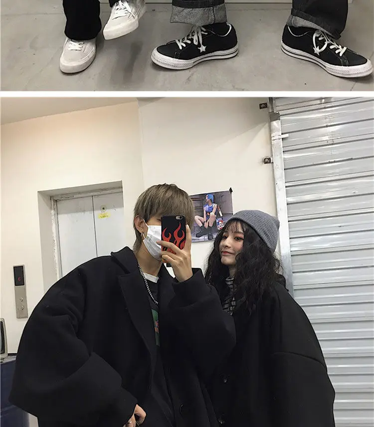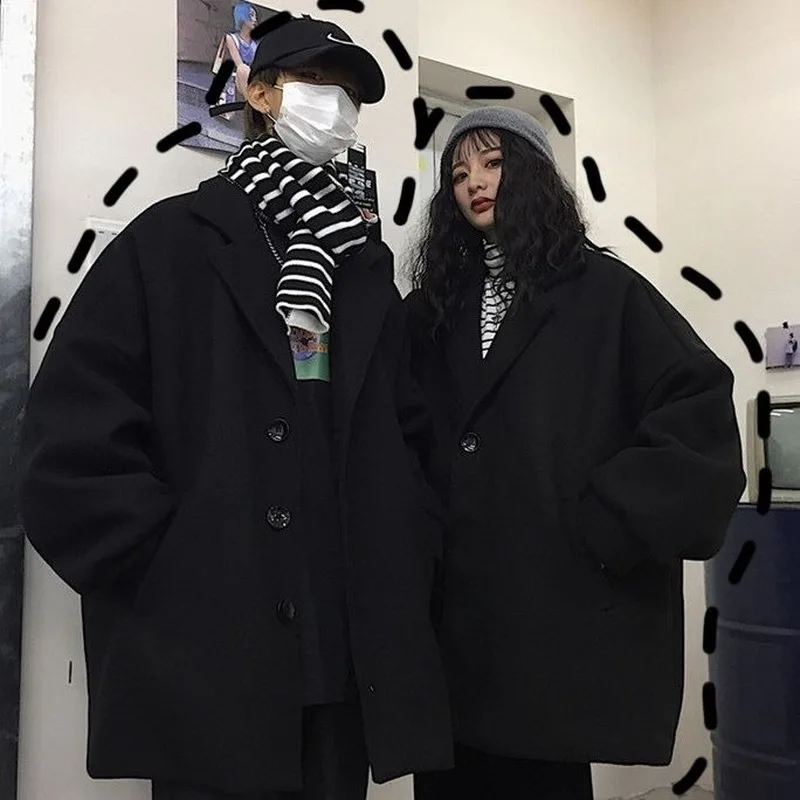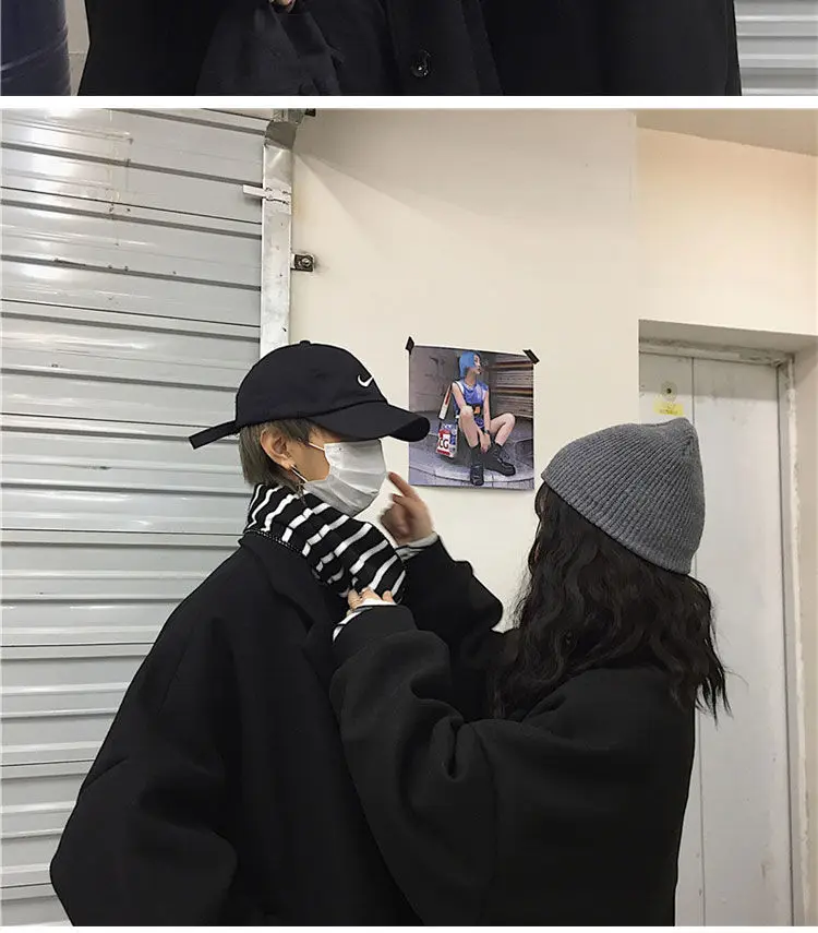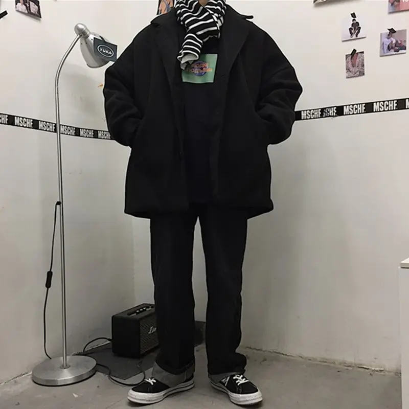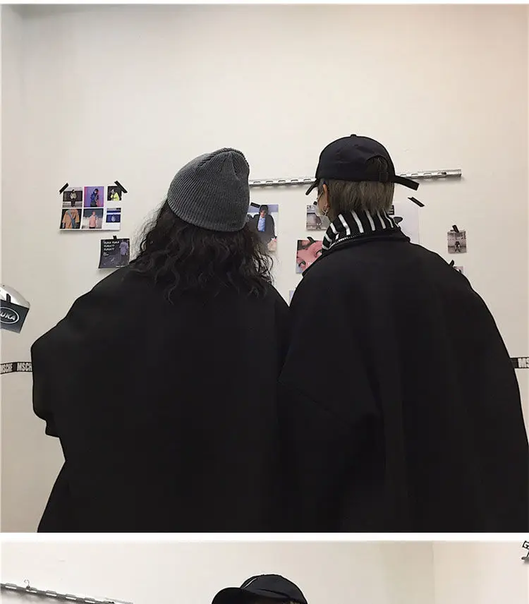 Женское однотонное пальто из смешанной шерсти, черное однотонное повседневное утепленное пальто с бархатной подкладкой в Корейском стиле для отдыха, модное Простое Шерстяное пальто в стиле Харадзюку