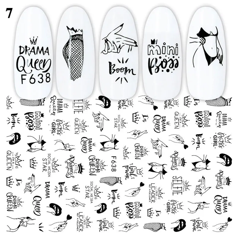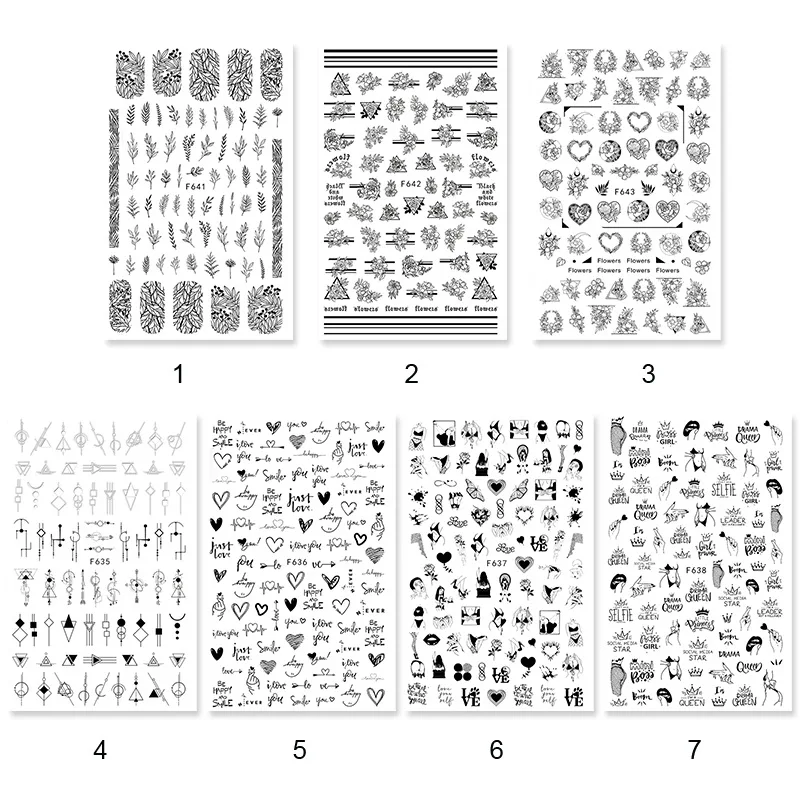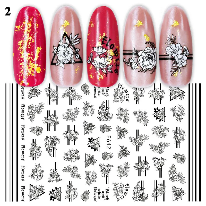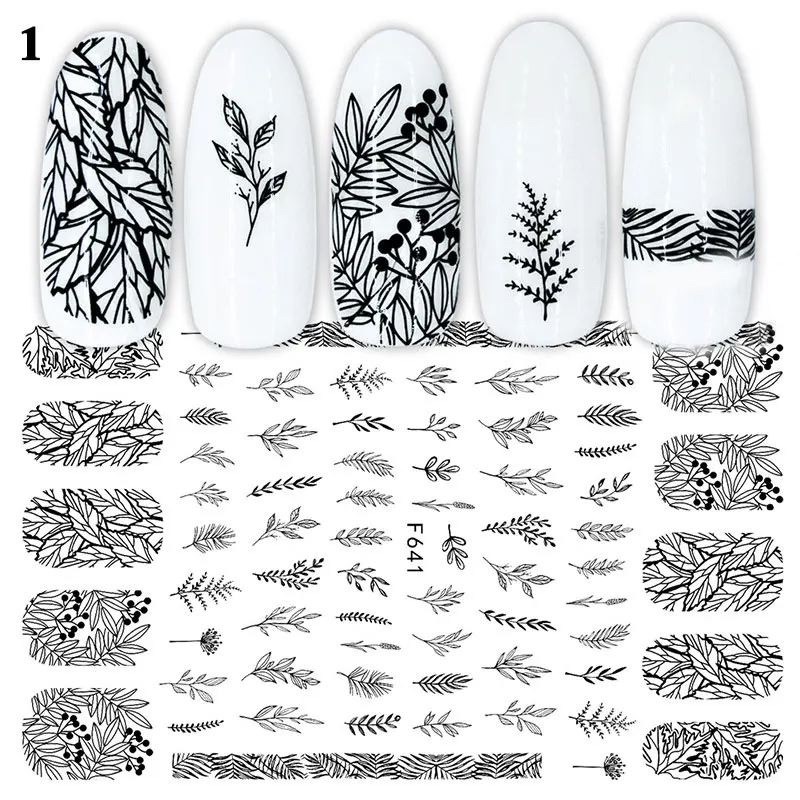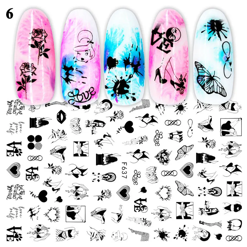3d-наклейка для ногтей с изображением сердца и листьев, черно-белая переводная наклейка для ногтей, слайдер для сексуальной девушки, абстрактная обертка для маникюра