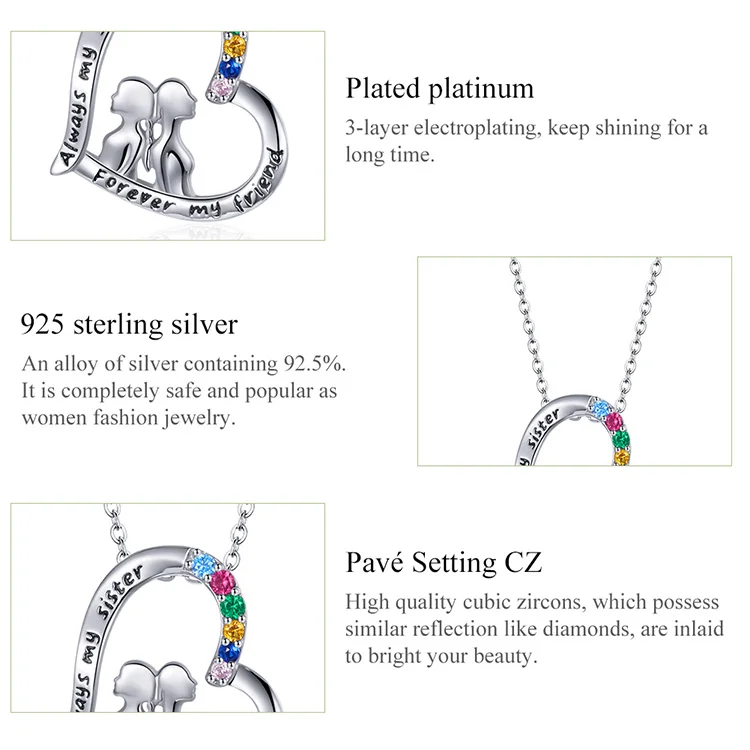 Bamoer подлинное серебро 925 пробы лучшее ожерелье сестер друзья на...