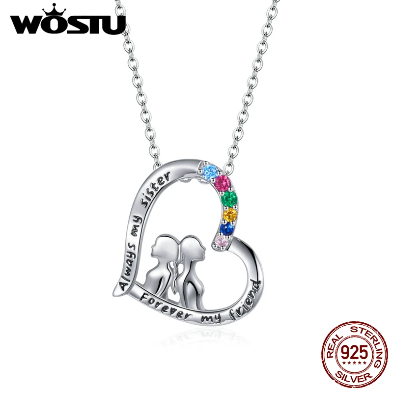 WOSTU 925 стерлингового серебра лучшие сестры ожерелье в форме сердца с длинным звено цепи ожерелье для женщин ювелирные изделия CTN229