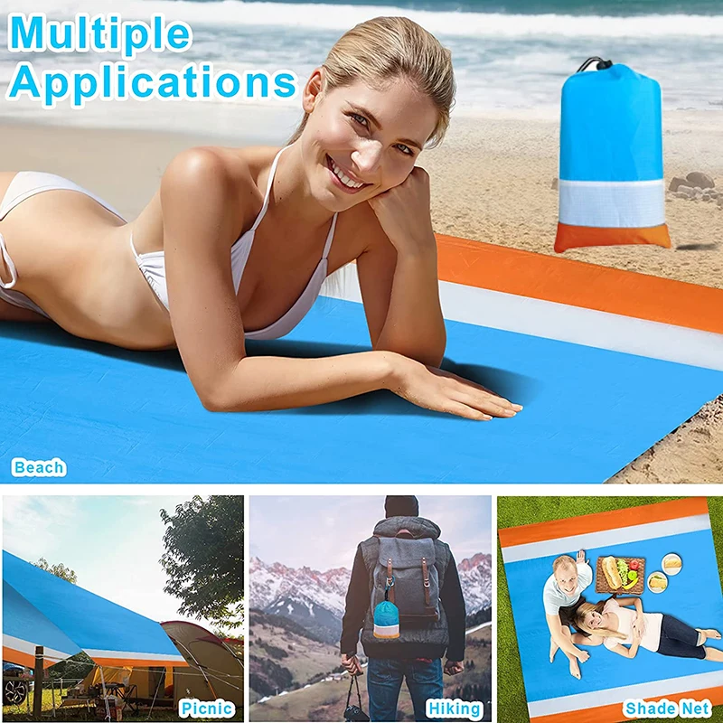 Это лучший Пляжный коврик без песка, который может держать вас подальше от песка, пыли и воды и легко переносить и использовать с бесплатными сумками и якорными стержнями.