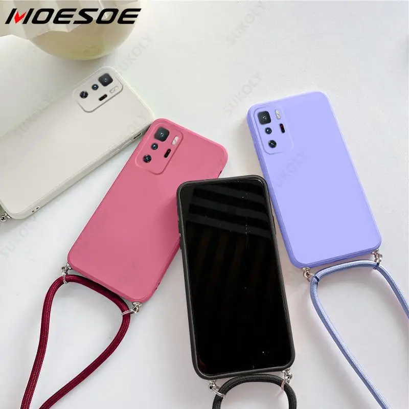 Чехол для Xiaomi Redmi Note 11 11S, квадратный чехол из жидкого силикона со шнурком для Mi 11 Lite 5G Poco X3 Redmi Note 10 9 K50, чехол на шею