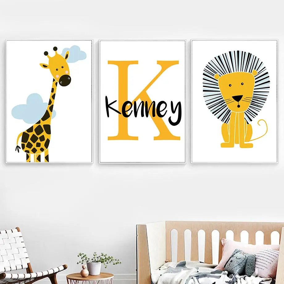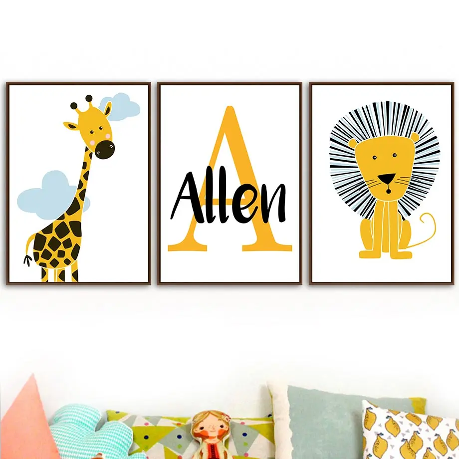 Персонализированная с именем ребенка Пользовательские настенные Арт плакат Жираф с принтом льва животных холст для живописи Nordic фотографии Детская комната Декор