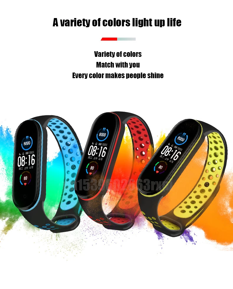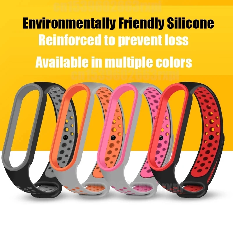 Силиконовый ремешок для Xiaomi Mi Band 6, 5, 4, 3, двухцветный, пористый, устойчивый к поту, дышащий, с пряжкой, сменные ремешки на запястье 4, 5