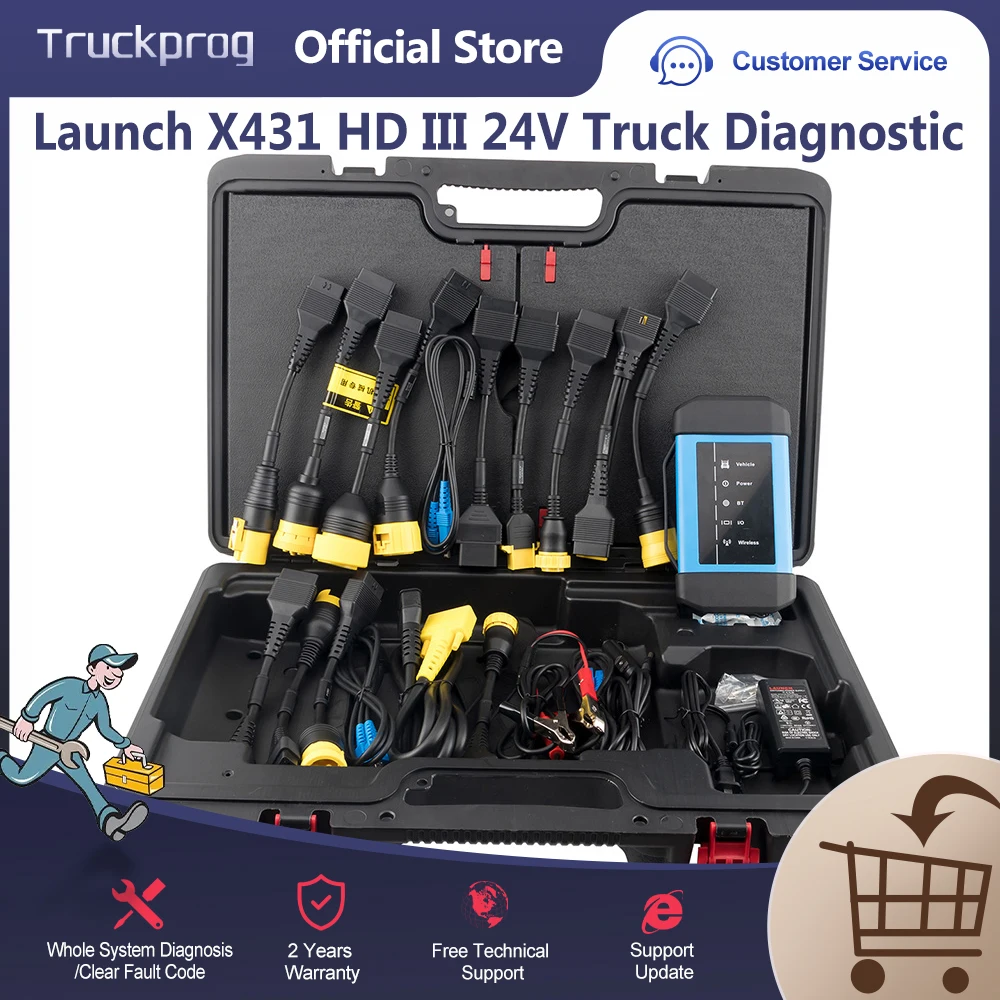 Диагностический инструмент Launch X431 HD III 24 В для грузовиков с разными брендами, работает с бесплатным онлайн обновлением X431 V + X431 PRO3 PADII