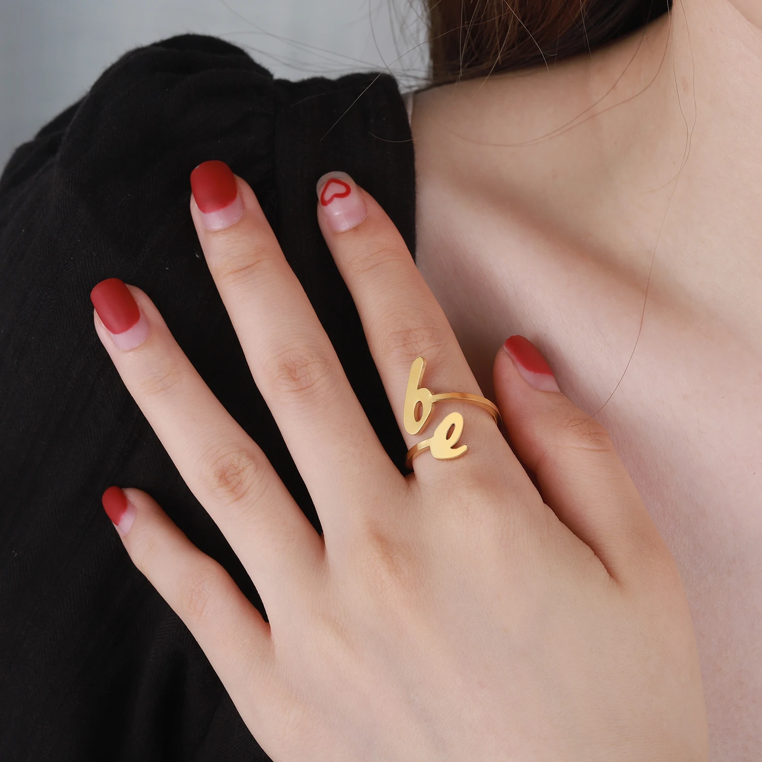 Модное персонализированное минималистское кольцо ручной работы регулируемого размера, индивидуальное женское кольцо с двумя буквами, Прямая поставка
